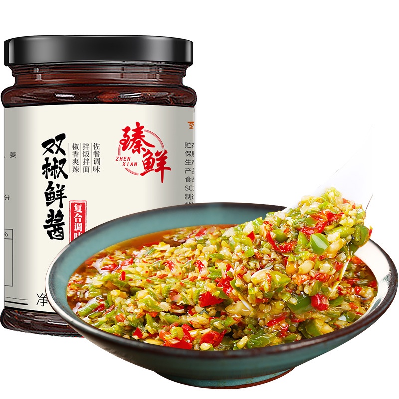 品牌:臻鲜 货号:双椒鲜酱 适用场景:商用 售卖方式:包装 产品类别:辣椒酱 储存条件:常温 保质期:365 原产地:四川 净重(规格):240 生产厂家:四川厨丰食品有限公司 生产许可证编号:SC10351142100012 包装规格:双椒鲜酱245g 是否进口:否