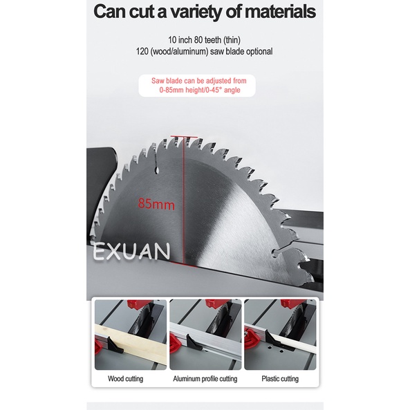 Saw blade height: 0-85mm adjustable