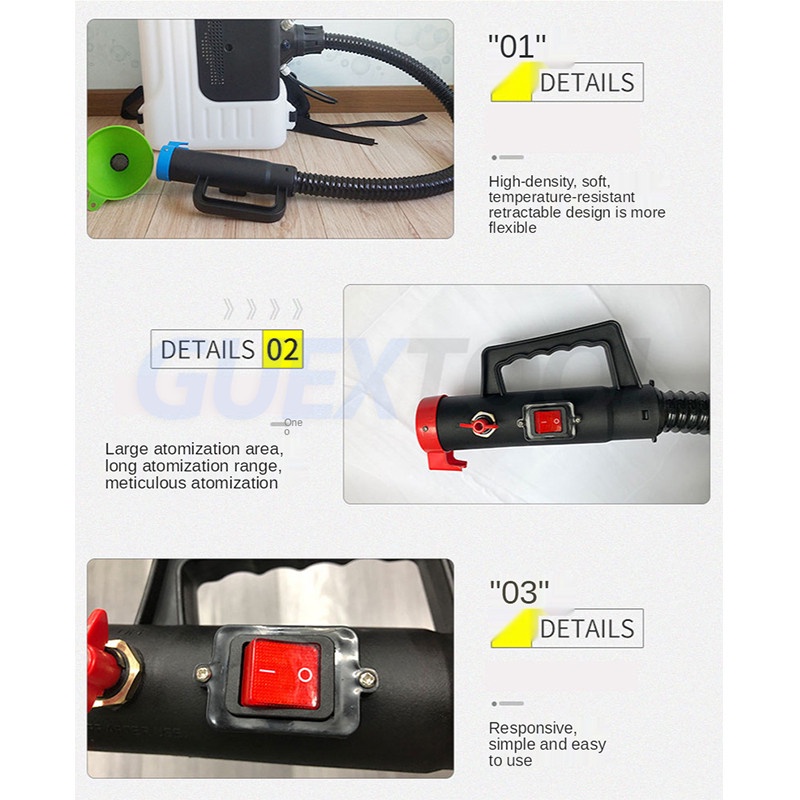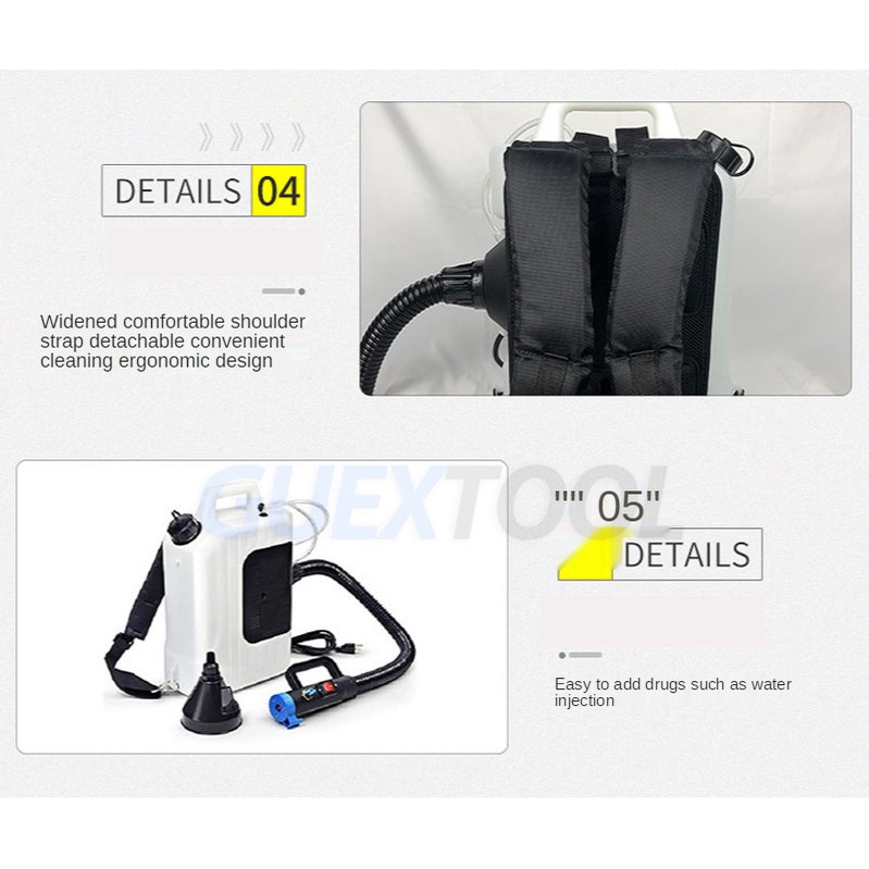 5.With frequency-conversion motor, adjustable delivery lift and noise, the fogger is very chemical saving.