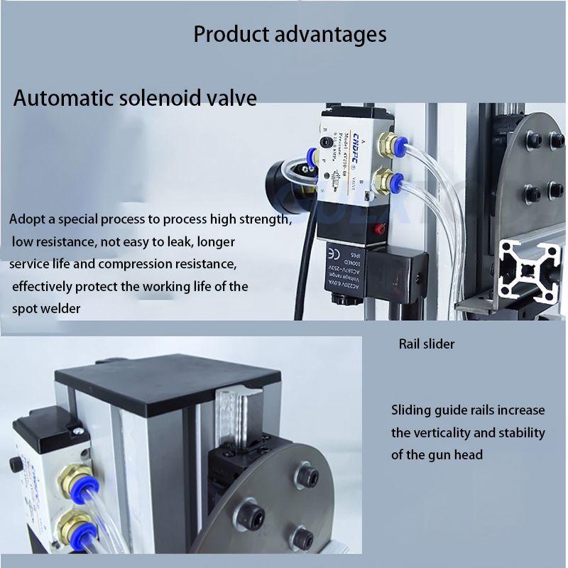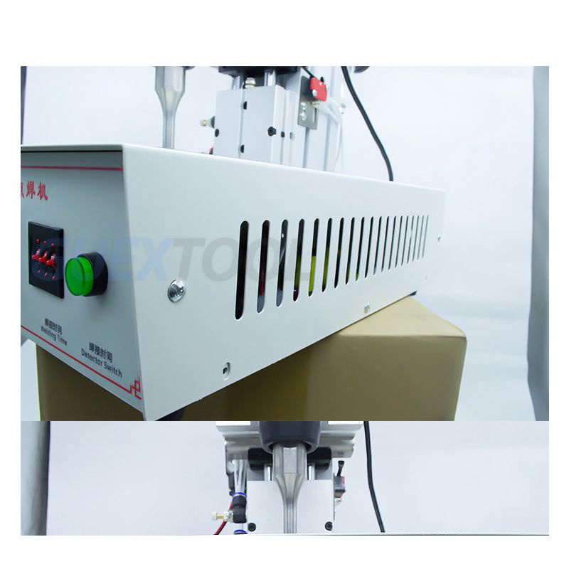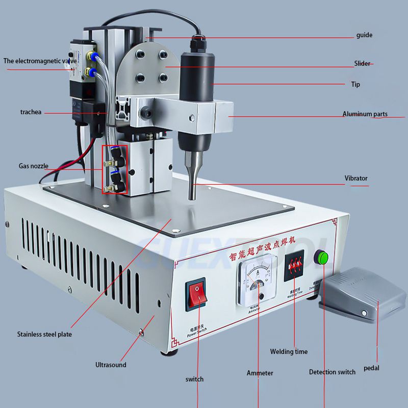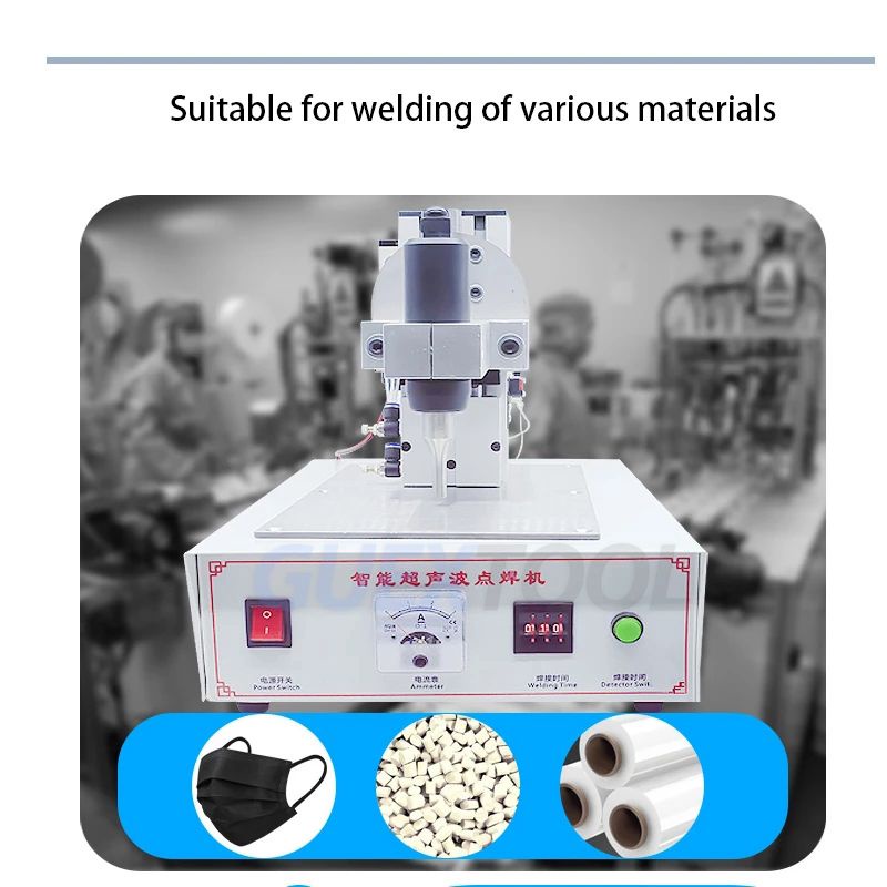 Product specification Product name: integrated spot welding machine Production speed: 400-600 pcs/hour Input voltage: 220V Input electrical: 0.3-0.4MPA Ultrasonic: 1200W Machine size: 390*280*100mm Machine weight: 11.05KG