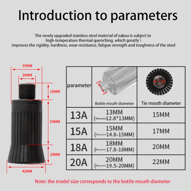 Tie head model = bottle caliber: 13/15/18/20MM