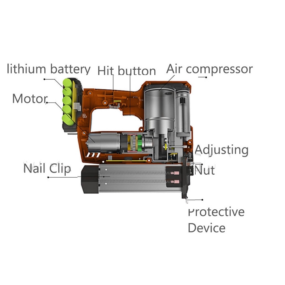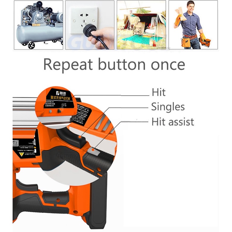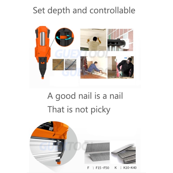 Brand Name: GUYX Product Product Name: Air Nail Machine Item model number: FUJ-40 Voltage: 18VDC, 50Hz Binding speed: 20 stitches/min-100 stitches/min Weight: 2.7kg Battery: 220-240V, 2000mAh Charging time: 45 minutes F nail: F15-F50 international standard nail K nails: K10-K40 international standard nails