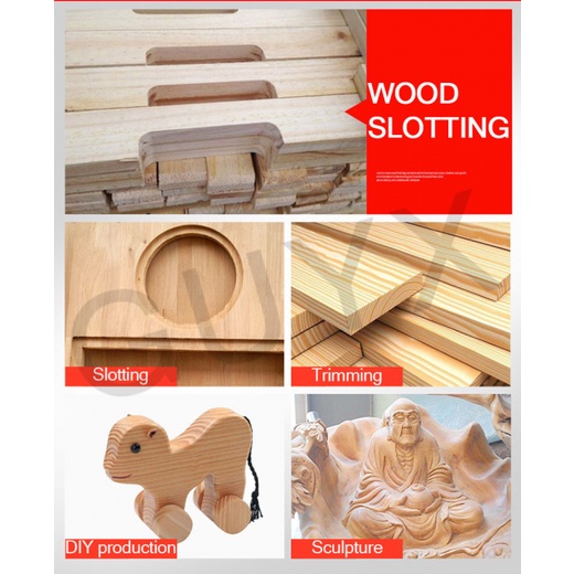 - Suitable for wood cutting, trimming, grooving and punching, can be used for woodworking, cabinet processing, crafts making.
