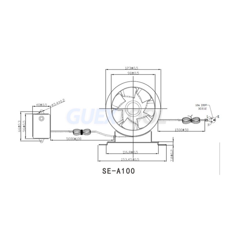 Product parameters: Size: 4 inches/100mm Voltage: 220v Power: 20w Frequency: 50/60hz Speed: 5100r/min Air volume: 273m³/hour Wind pressure: 230pa Noise: 53db Weight: 1.5kg