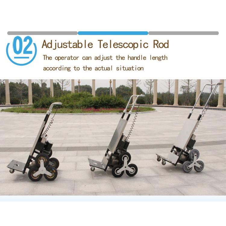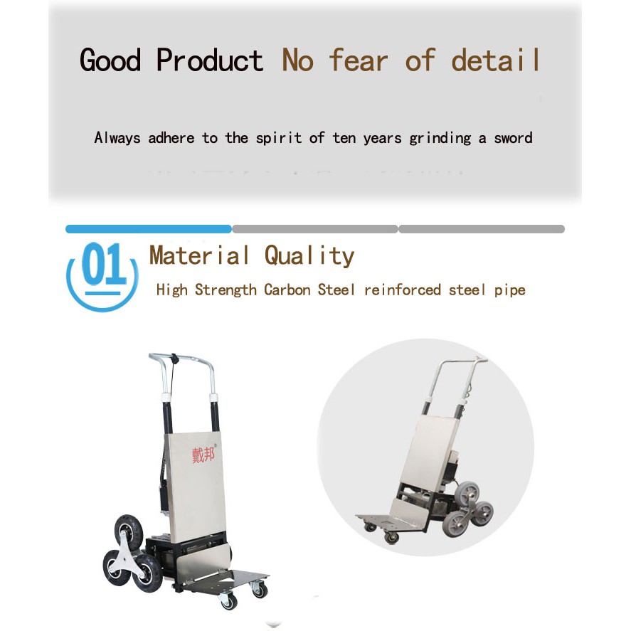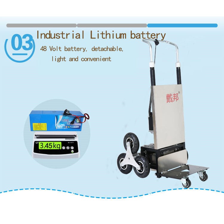 It can carry goods up and down stairs, the motor drives the elevator to move forward, and the lithium battery drives it.