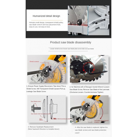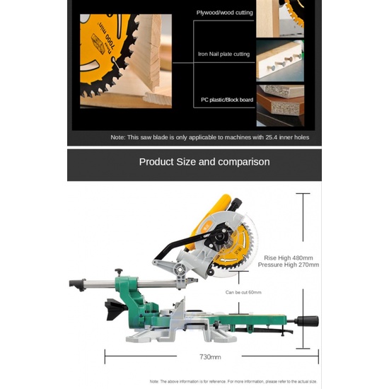 Product name: drawbar miter saw Model: J1G-ZP-190 Rated power: 1500W Rated voltage: 220V No-load speed: 4500R/min Inner hole of saw blade: 25.4mm Saw blade diameter: 190mm or 185mm Net weight: 9.5kg