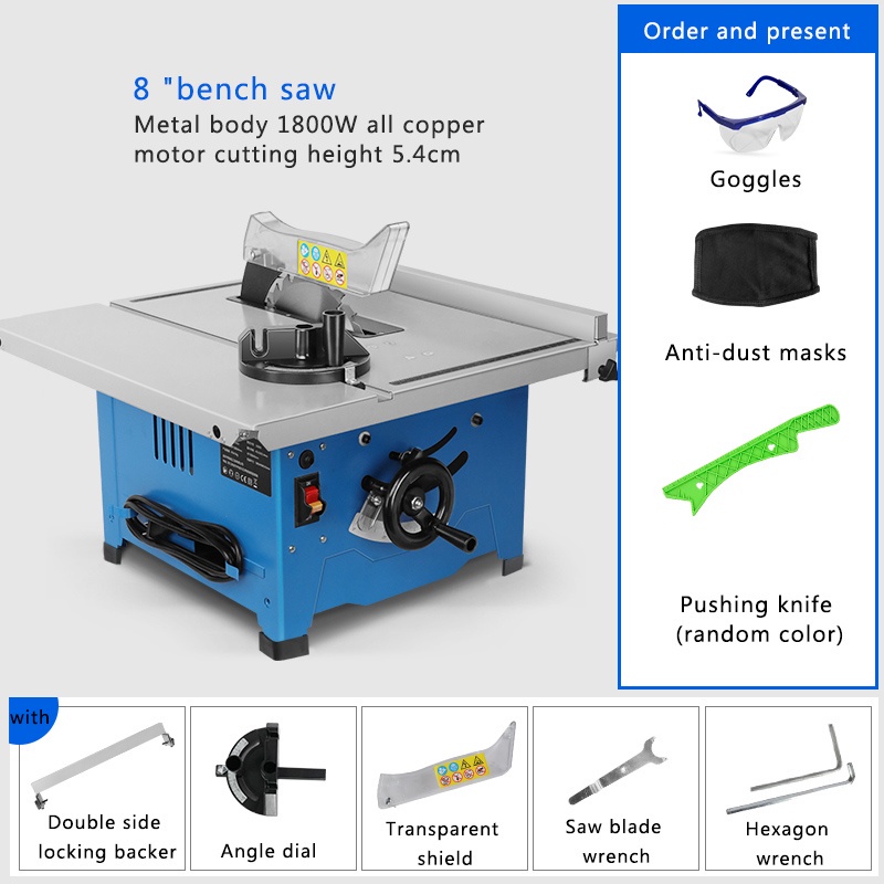 8-Inch Household Miniature Woodworking Table Saw Electric Multi-Function Precision Dust-Proof Decoration Cutting Machine