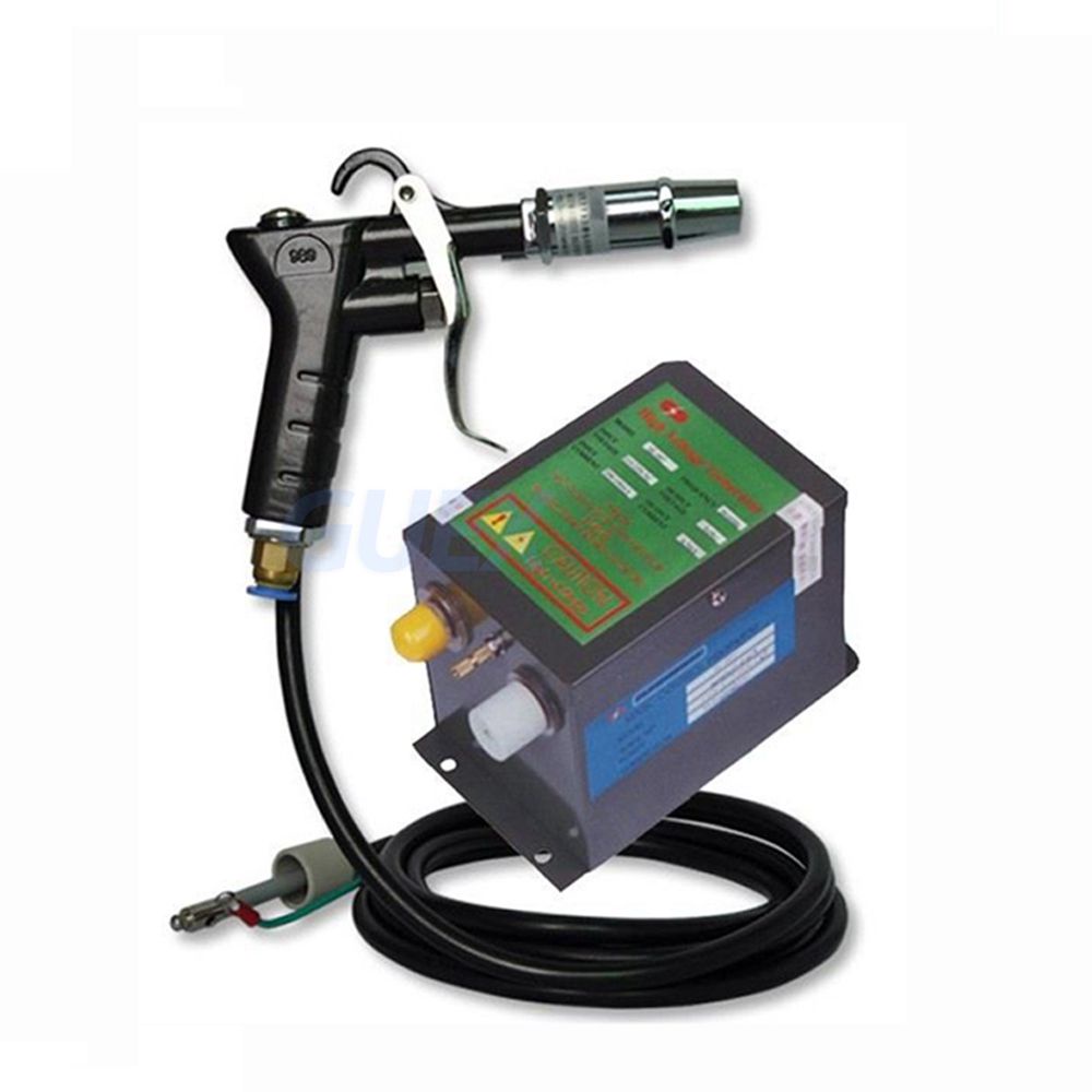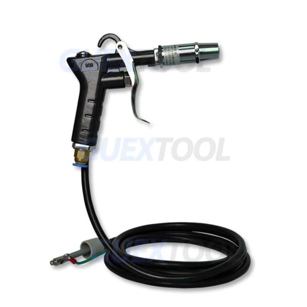 Specification: Air gun: working power 4.6KV Power consumption: 200uA Working temperature: -10-50C High voltage cable length: 3 meters Discharge time <2 S (from 2KV to 100V) Air pressure 5 ~ 7 kg Wind speed> 10m/sec Weight 0.55kg Test voltage: 5KV-500V Working voltage: 4.6KV Ambient temperature: 22C Distance: 30mm 90mm 150mm and IB timec Positive pole: 0.1s 0.4s 0.7s Negative electrode: 0.1s 0.3s Generated: 0.1s Working voltage: 110V/60HZ or 220V/50HZ Current consumption: 0.23A or 0.12A Working temperature: -10 -50 C Weight: 3.3Kg Output voltage: 4.6Kv 2 Output current: Maximum: 4.5mA 1*1PCS Air gun; 2*1PCS Generator