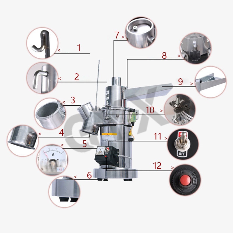 Product parameters Product Name: HK-08B Laboratory Flowing Crusher Model: HK-08B Application areas: laboratory, pharmacy, shopping mall, family Production capacity: 10-30kg/h Spindle speed: 2840r/min Feed particle size: 10-70mm Discharge size: 0.01mm Motor power: 2200w Voltage: 220v Dimensions: 580*500*200mm Weight: 25kg Degree of crushing: fine grinding machine Material moisture content: 5-10% Principle: high speed universal crusher