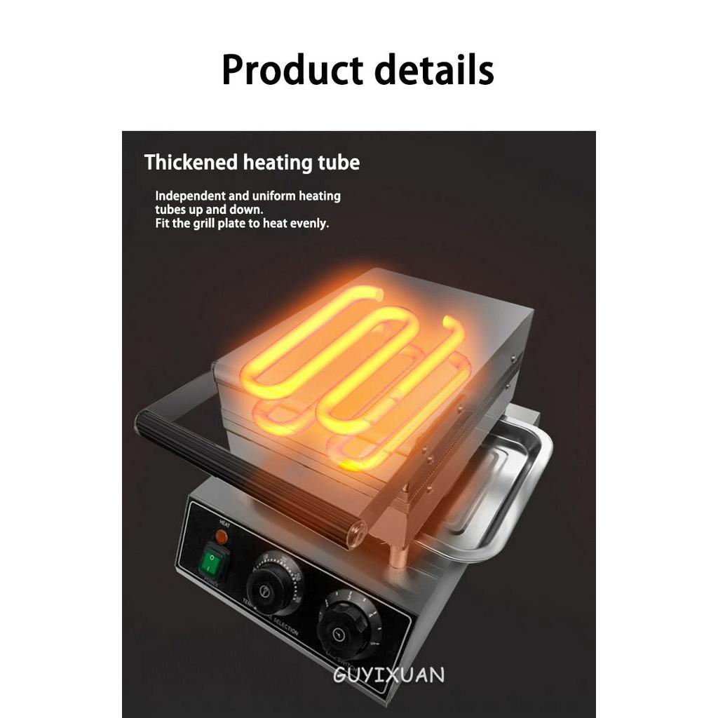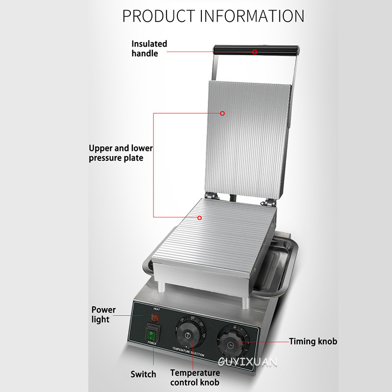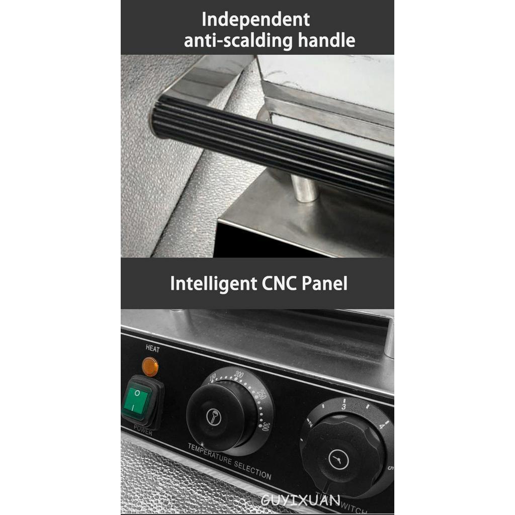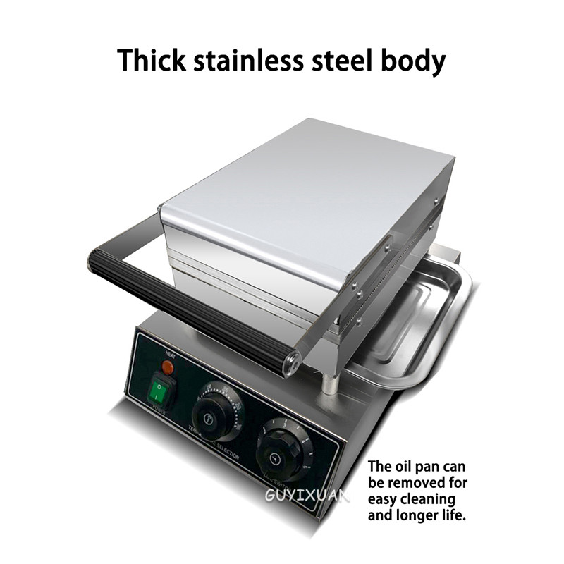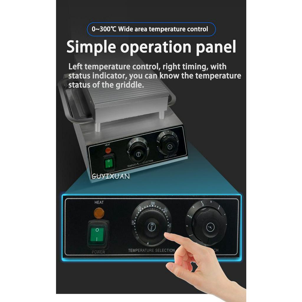 Product parameter Product Name:Egg Roll Machine Power:1650W Temperature control:50-300℃ Timing:0-5 minutes Material:Stainless steel Platen thickness:1CM Product weight:7.35KG