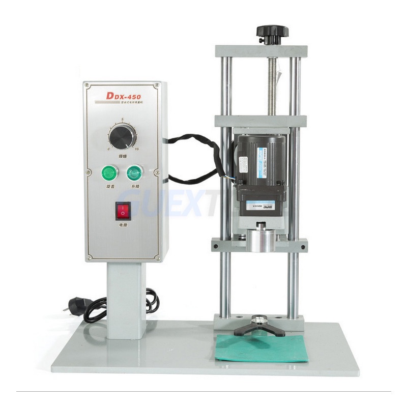 technical parameter Model name: DDX-450 electric desktop capping machine Power supply: AC 110v / 220V ± 10% 50 / 60Hz (110V needs to be customized) Power: 40 (Watts) Model: desktop Chassis material: iron, aluminum paint Screw cap diameter: φ10-φ50 (mm) Production capacity: 20-40 (times/min) Bottle height: 80-220 (mm) (below 80mm needs to be customized) Size: 52×30×53(cm) Net weight: 32 (kg) Equipment introduction Electric capping machine is mainly used for cap screwing and unscrewing. It can easily be used to tighten or loosen the lid. Its adjustable clutch (re-adjustment) effectively avoids cap damage and reduces wear. Once the lid is tightened the chuck stops spinning, indicating that you can operate on the next cap. It is suitable for the capping work of various high-strength bottle caps. Suitable for direct range of caps from 10-50mm.