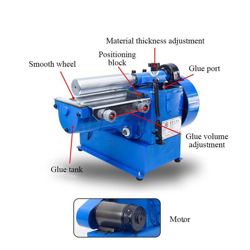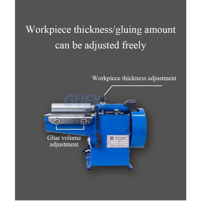 Brand Name: GUYX Product parameters: Power supply voltage: 220V Motor power: 150w Glue width: 0-160mm Glue thickness: 1-10mm Net weight: 14.5KG Machine size: 400×300×265mm
