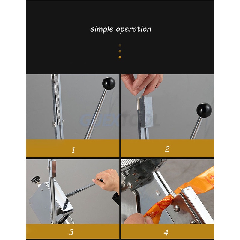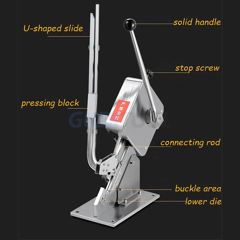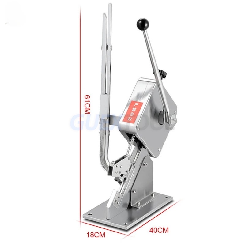Product name: ham machine Model: GU-50 Control method: manual Material: Stainless steel Accessories: Fasteners Capacity: 150-200 fasteners Weight: about 12.5 kg Size: 18*40*61cm Packing size: 43*22.5*66.5cm application: Sausages, plastic bags, edible mushrooms, mesh bag sealing. The machine occupies a small area. High-quality material is not easy to deform. Adjustable elastic switch is convenient. Thickened stainless steel base is stable. The handle is smooth and durable.
