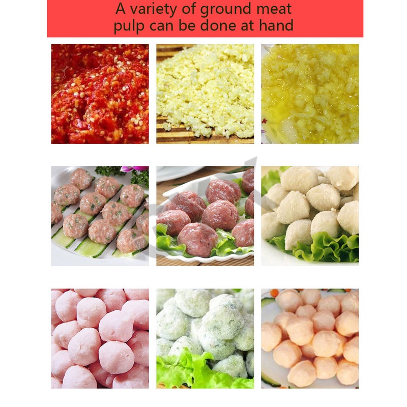 Product parameters Product Name: Meatball Beater Voltage: 220/380v Power: 3000kw Net weight: 40kg Packing: carton + wooden frame Dimensions: 350*420*860mm Product use: minced meat / meat slurry Working efficiency: 4kg/time Scope of application:frozen food factory equipment, meat processing plant equipment, western food shop equipment,Chinese restaurant equipment Product features: This machine has the characteristics of beautiful appearance, sturdy and durable, convenient operation and maintenance, and power saving. It is an ideal equipment for processing pork balls and beef balls. This product is loaded with 2-8 kg of meat at a time. You can finish the meat, ingredients, and stir into the pulp in 2-3 minutes. It is finer than the manual pulp, and the meatballs and fish balls are good in elasticity and white in color. To meet the hygiene requirements, the meat drum cover and the bottom of the barrel are equipped with cooling devices to ensure that the meat is fresh.
