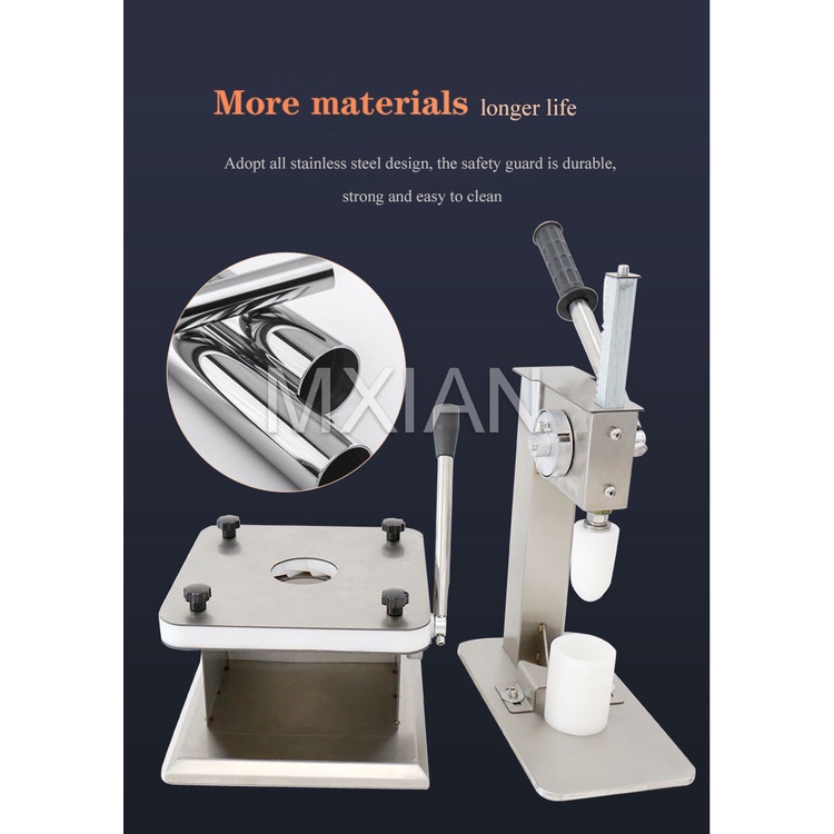 Instructions for pressing the shell machine: clean the machine before use. A little salad oil (edible oil) can be rubbed on the white mold cup, pressure head, and hand-pressed lever gear to make the machine more lubricated and smooth. The three screws under the mold cup can adjust the shell During the process, the thickness of the leather is uneven. Before use, fix the machine with a fixing clip on the countertop or desktop to make it firm and easy to use.