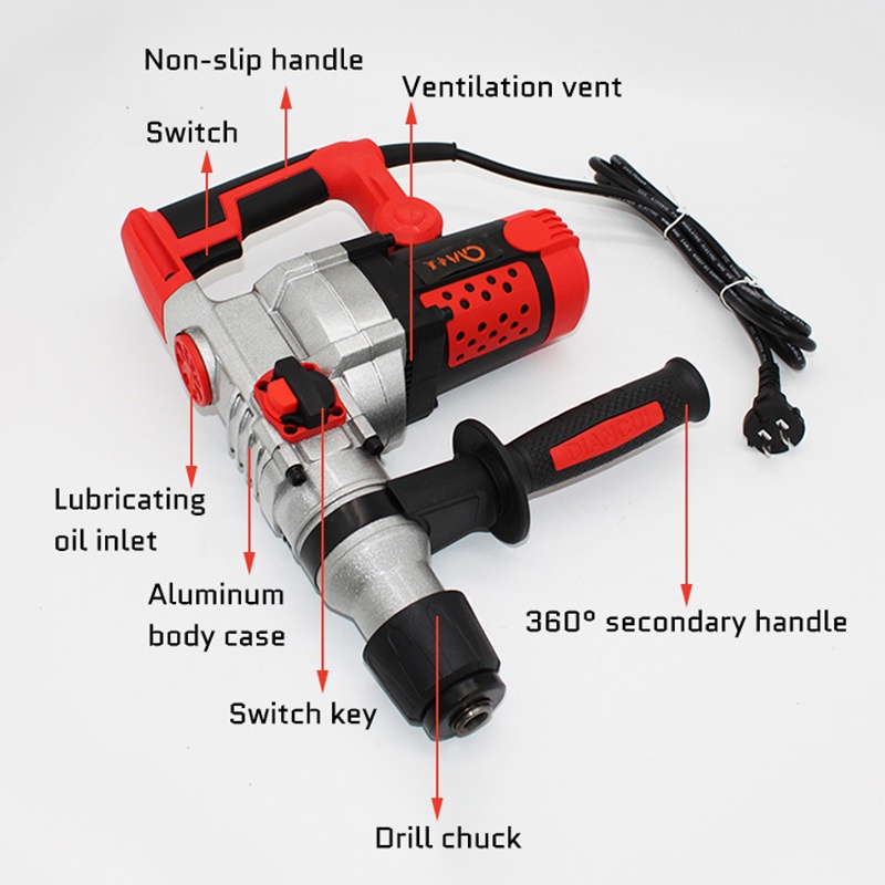 Model: 26-cylinder classic electric hammer (without electric drill), 30-cylinder heavy-duty electric hammer (without electric drill),26-cylinder classic electric hammer + simple drill group, 30-cylinder heavy-duty electric hammer + simple drill group