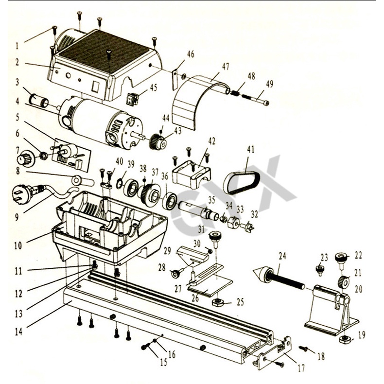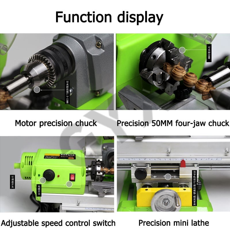 Product Parameters Product Name: Beading Machine Voltage: 220v 50hz Host: 480 100~5000r/min Maximum machining diameter: 40mm Maximum processing length: 150mm Secondary motor: 710w 0`2800r/min Drill chuck clamping diameter: 1-13mm Packing size: 53*32*28.5cm Gross weight: 16.78kg 1. Woodworking lathe 2. Lock nut M8 3. Connection board 4. Hexagonal nut M8*15 5. DT-6350 cross table 6. Hexagon socket head screw M6*18 7. Elastic pad C6 8. Secondary motor connection board 9. Elastic pad C9 10. Hexagon socket head screw M8*20 11. Secondary motor 1. Self-tapping screw ST4*18 2. Chassis cover 3. Motor protective cover 4. Motor assembly 5. Speed