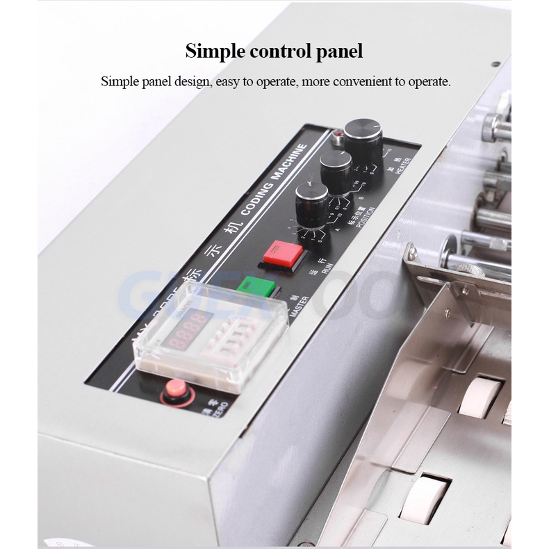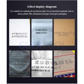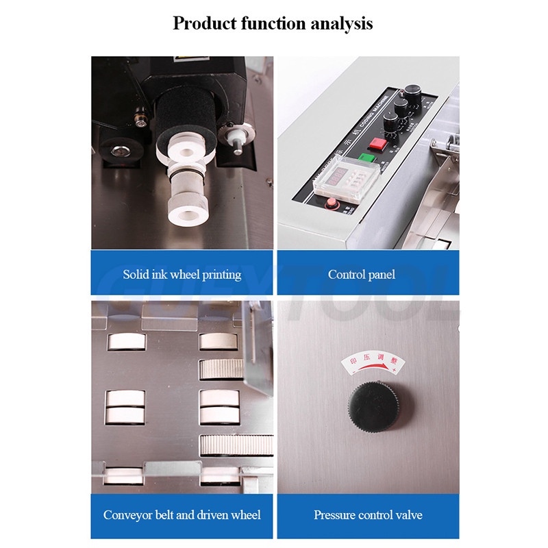 Brand Name: GUYX Model: MY-380F describe: MY-380F solid ink coding machine is suitable for printing labels on paper, thin cardboard, plastic film and aluminum foil. Using solid ink for coding, it has the characteristics of high definition, instant printing, instant drying, a variety of colors, and strong adhesion. feature • Adopt photoelectric mechanism technology, automatic temperature control, automatic counting, adjustable printing position. • Rotate the knob to adjust the print position, easy to operate. • Works efficiently and automatically at high speeds, up to 30 pieces per minute. • The thickness can be adjusted according to need, suitable for different thickness products. • It has the function of printing the date by one machine, saving labor costs and improving efficiency.
