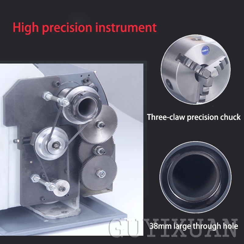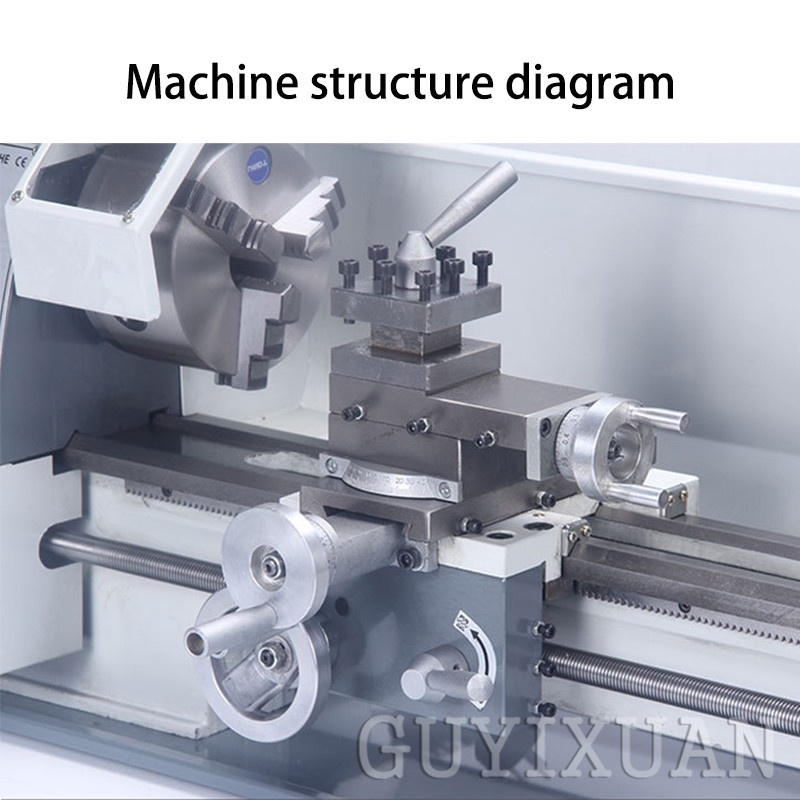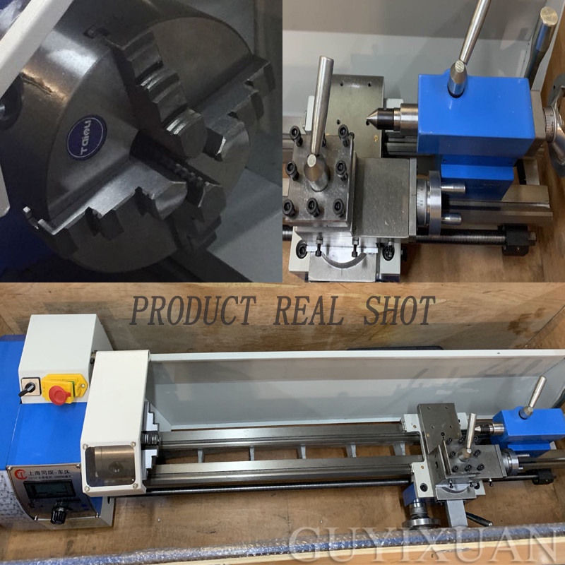 Product name: 210+80 metal lathe Voltage: 220V50HZ Motor brushless 750W: equivalent to brush 1000w Spindle through hole: 38mm Spindle speed: 50-2500 rpm Number of shifts: stepless speed change Machine accuracy range: <10s Tool holder swing diameter: 100mm Bed turn diameter: 180mm Two tip distances: 800mm Spindle inner hole taper: Mohs 3 Tailstock shaft taper: Mohs 2 Chuck maximum clamping: 120mm 125 chuck Tool holder station: four stations Maximum travel of the tool holder: 55mm Medium pallet travel: 75mm Large pallet travel: 276mm Tailstock sleeve stroke: 60mm Automatic feeding range: 0.1-0.2mm Lathe length: 1200mm Lathe width: 390mm Lathe height: 370mm Lathe gross weight: 90kg chuck:Three-jaw chuck (The default three-jaw chuck is issued, if you need a four-jaw chuck, please contact customer service!) Because the production batch is different,now the color is blue, the color of the machine will change, now the color is blue,we will ship the blue to you. If you have any questions, please contact customer service.thanks!