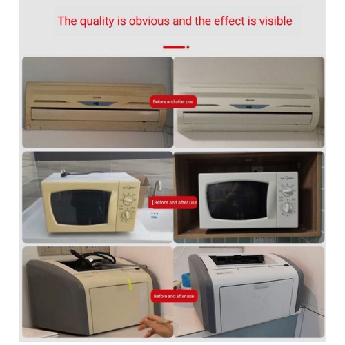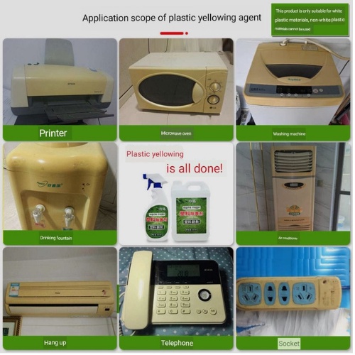 1、将泛黄剂均匀喷洒在表面(用量以塑料表面流下的液体为准);