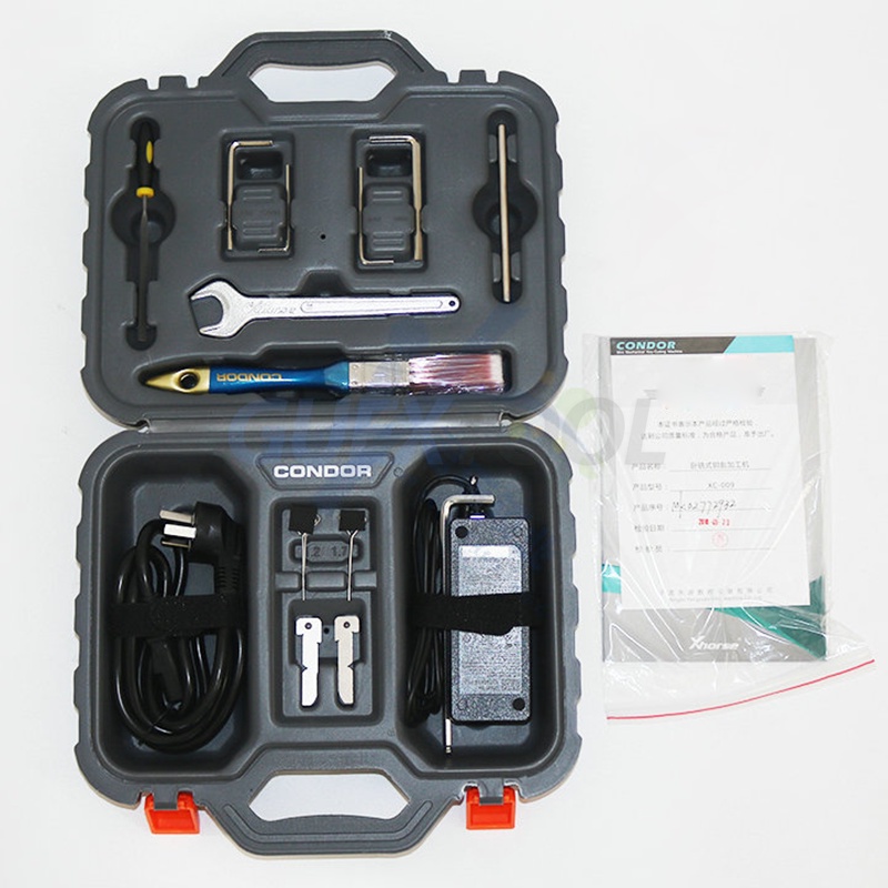 Product specification Product name:Portable XC009 Manual Horizontal key Machine (Without batteries) Spindle speed: 1800rpm Fixture spacing: 95mm Working temperature: 0~50° Working temperature: 10-90% Machine size: 285*175*180mm Rated power: 200W Power parameters: 12~18V/3A Maximum output torque: 1.2Nm