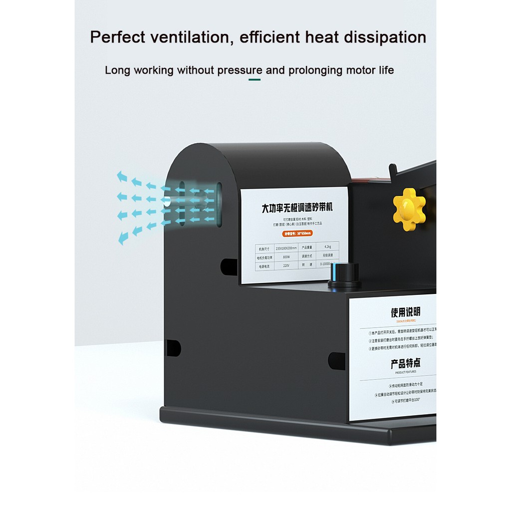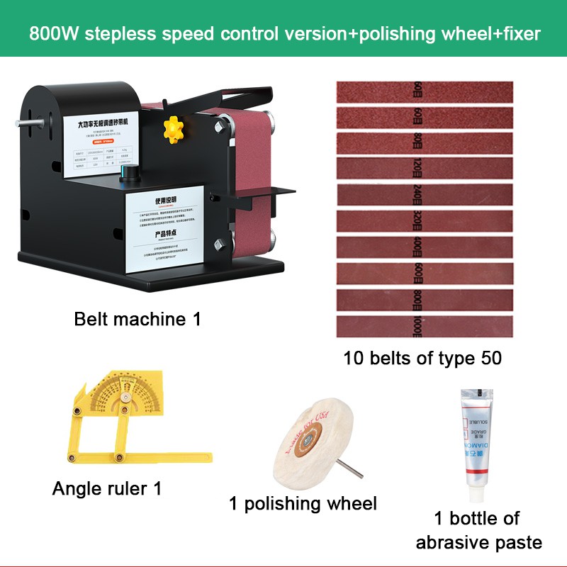 Product configuration: 1 sanding belt machine, 10 50 type sanding belts, 1 angle ruler, and 1 polishing wheel.