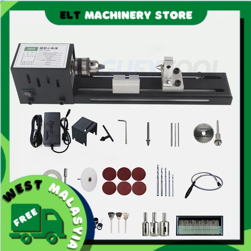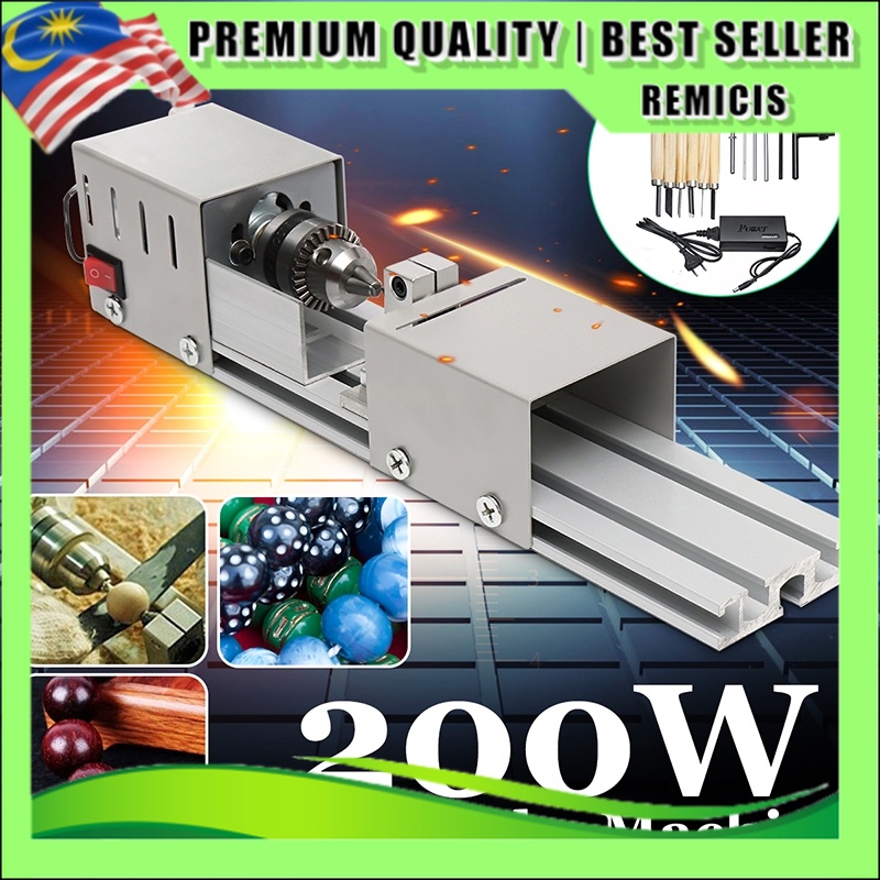 200W Mini Lathe Beads Machine Wood Lathe Diy Woodworking Tool Milling Grinding Polishing Carving Drill Rotary Tool Set