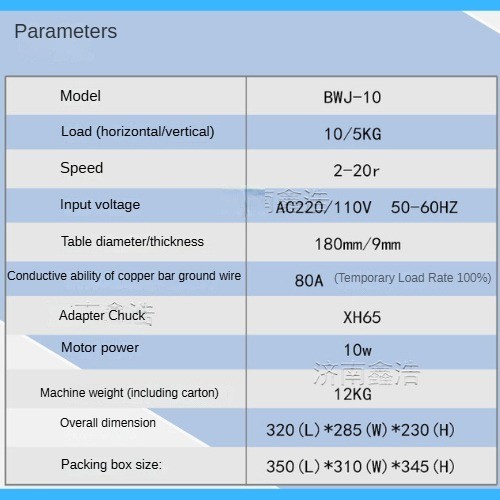 BWJ-10 (10 kg positioner) is mainly composed of five parts: worktable, turning