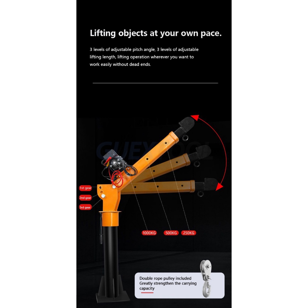12V/24V Truck Self-Provided Truck-Mounted Crane 500kg Household Electric Hoist Hoisting Locomotive Truck-Mounted Crane