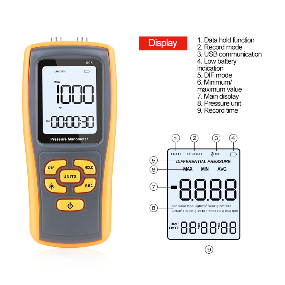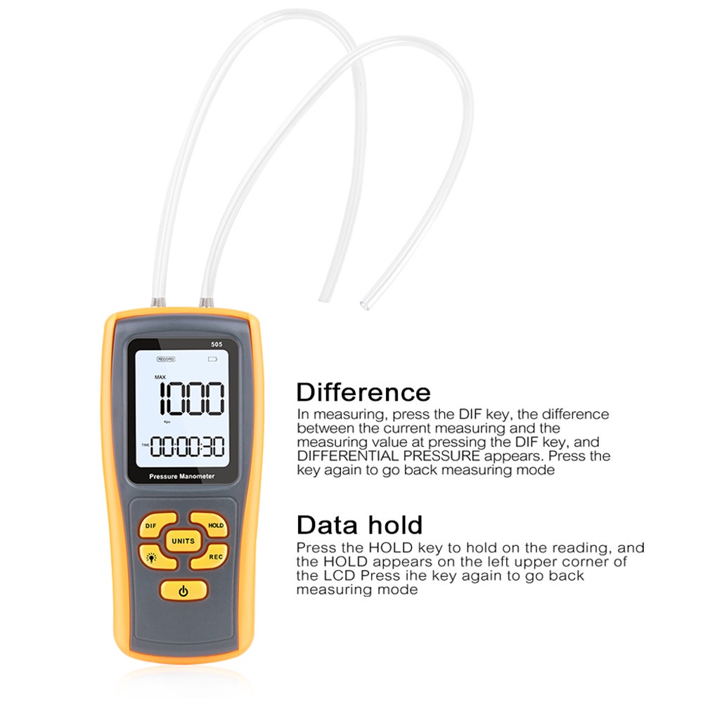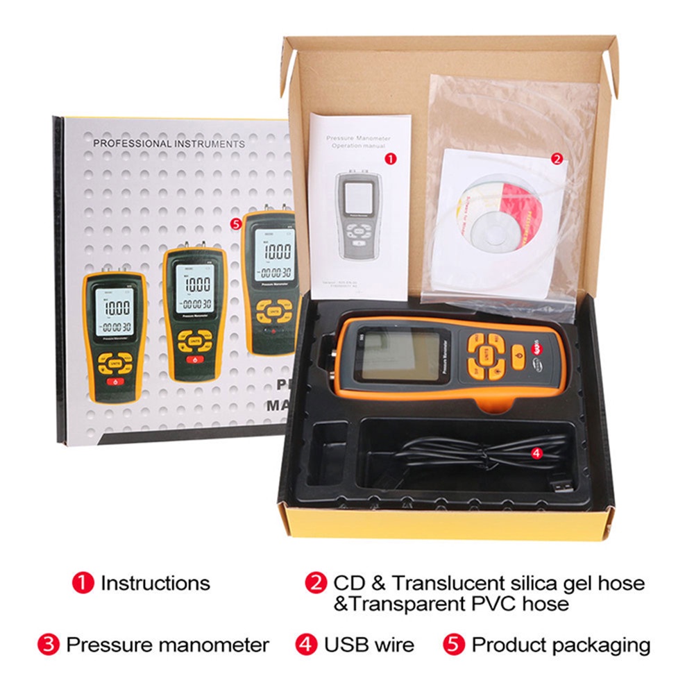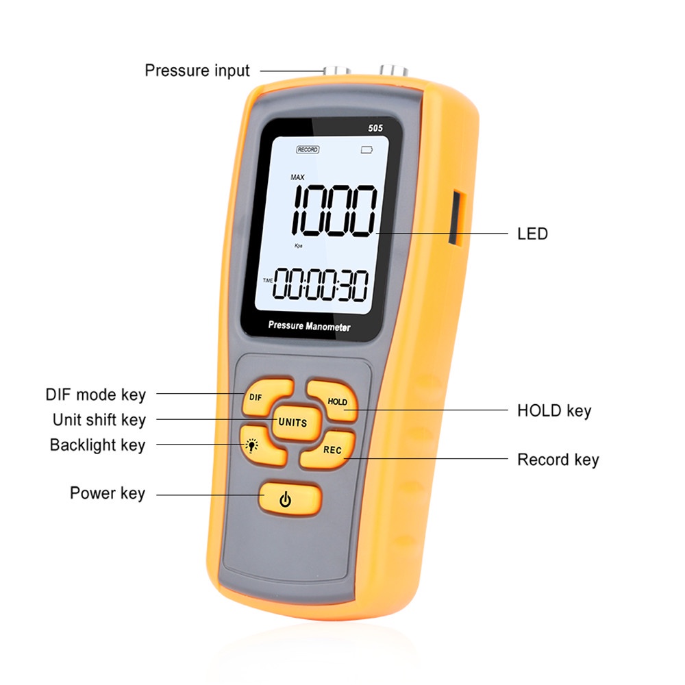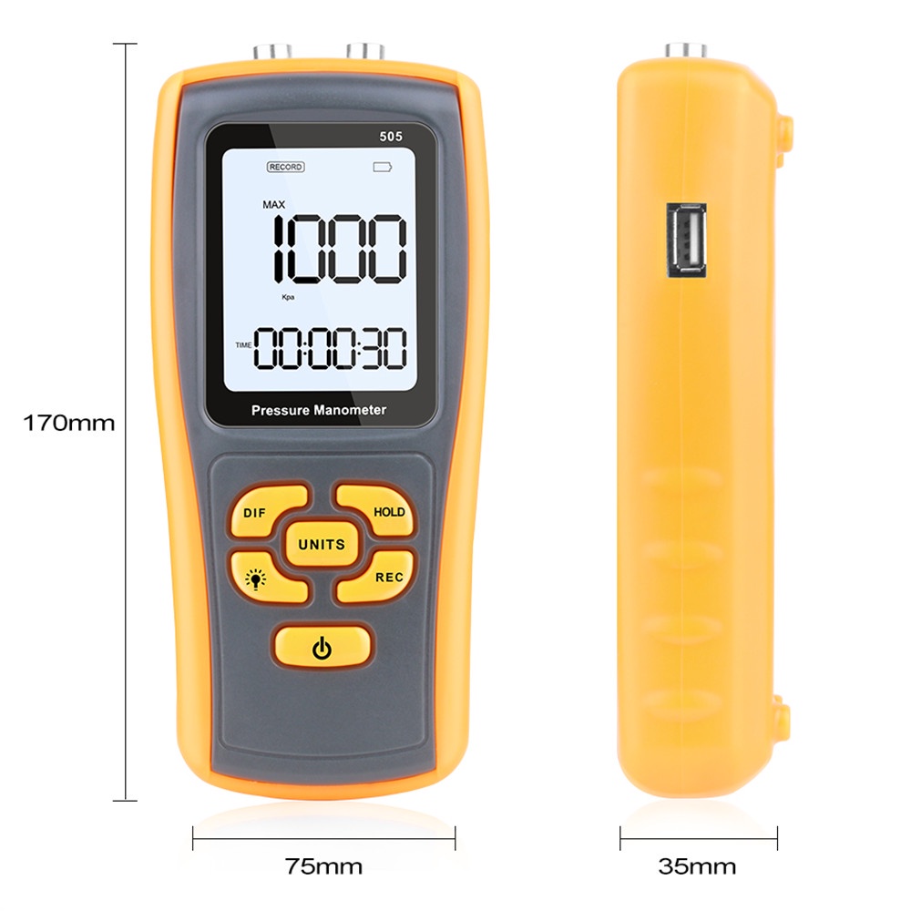 2.49KPa Digital Pressure Manometer GM505 High Precision Manometer Differential Pressure Meter Air Pressure Tester