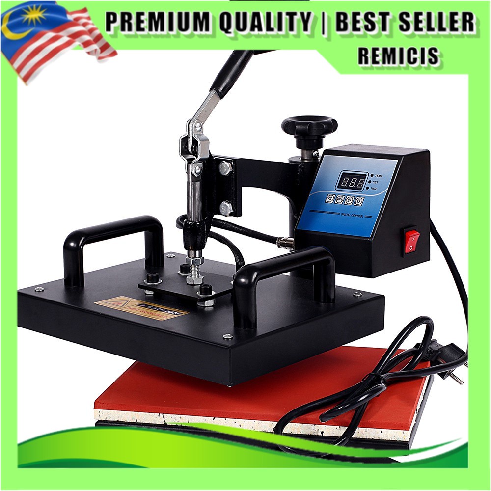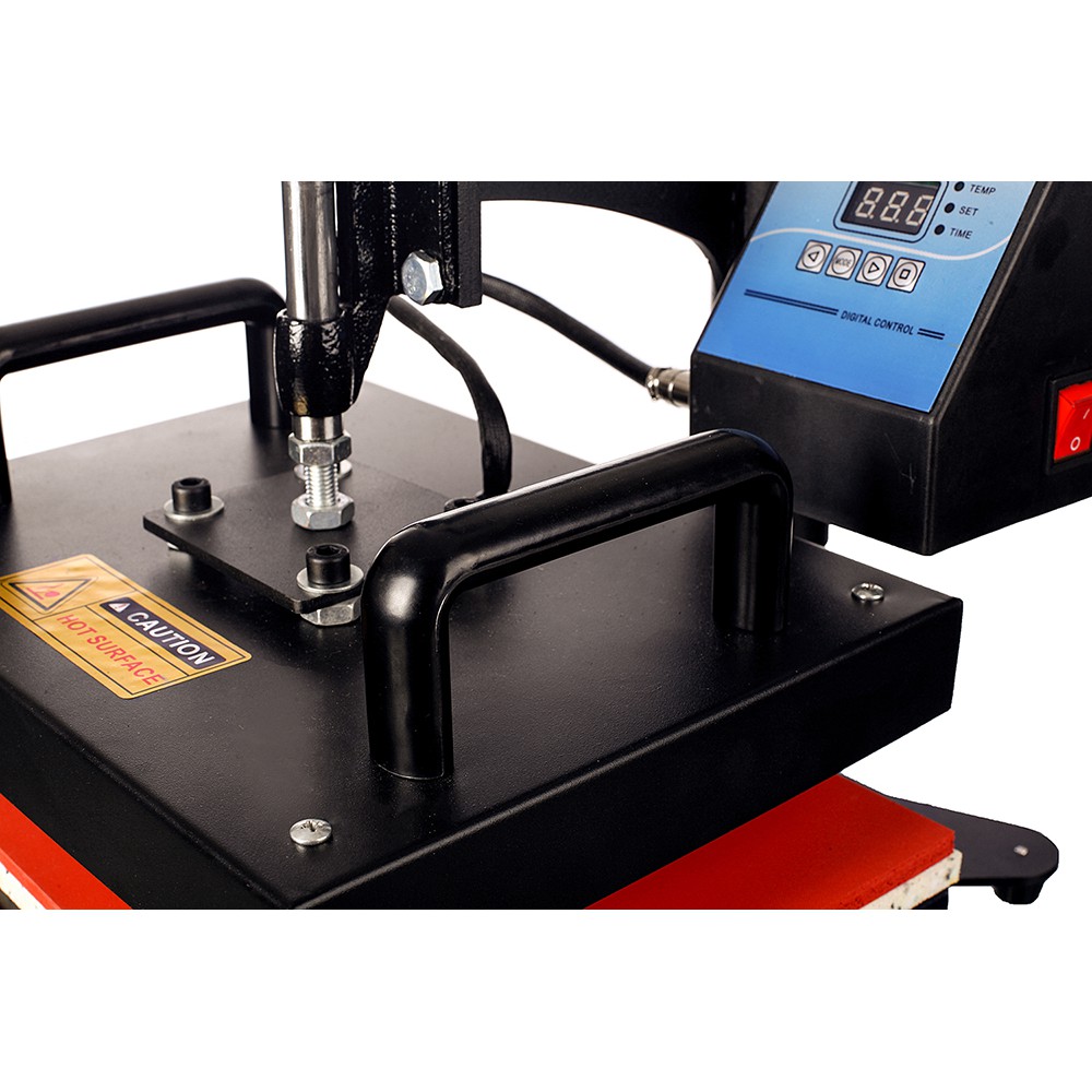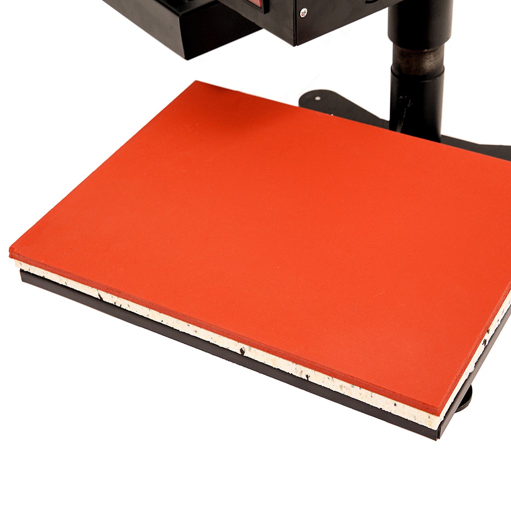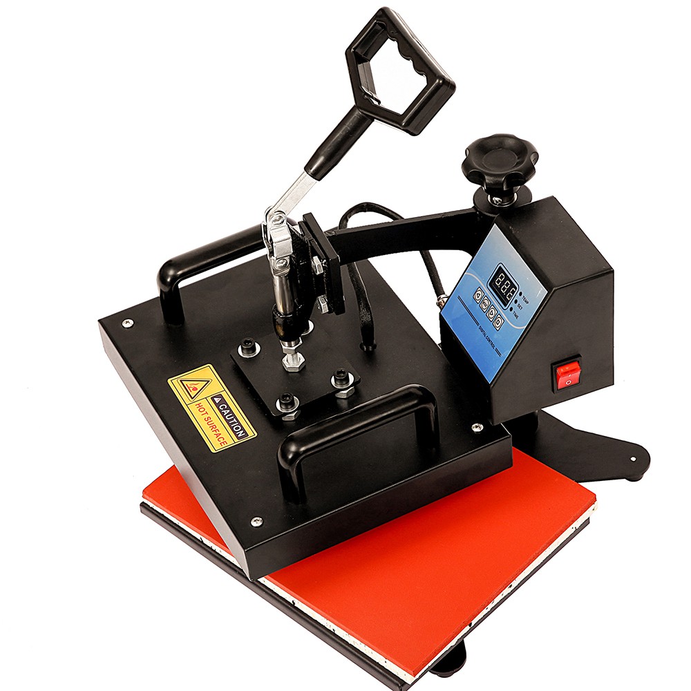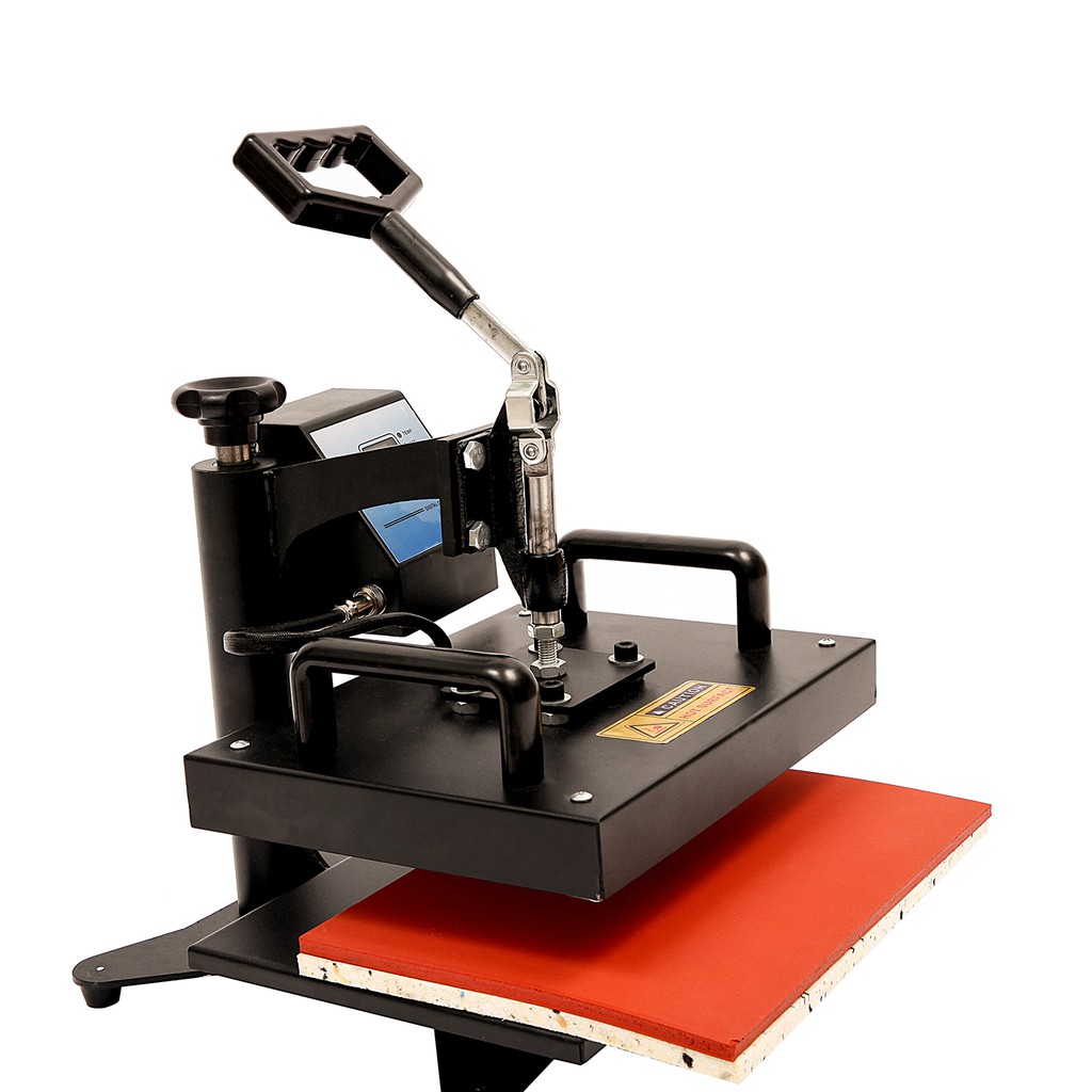 A heat press machine is the machine that presses a transfer onto an imprintable substrate. Using high temperatures and pressures for a certain amount of time, the transfer is permanently embedded into the product.