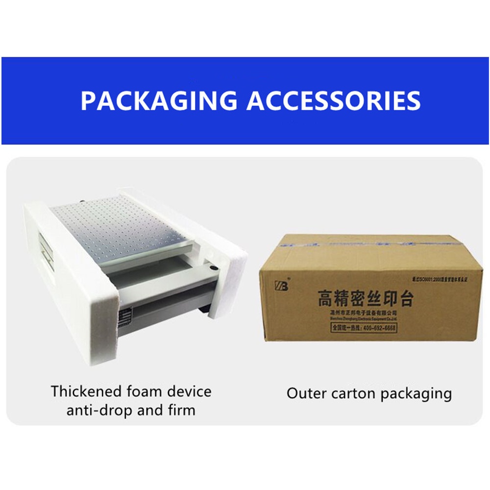 ■Steel mesh stent uses spiral screw, can be adjusted up and down,convenient to control PCBthickness and the quantity of printing solder paste.