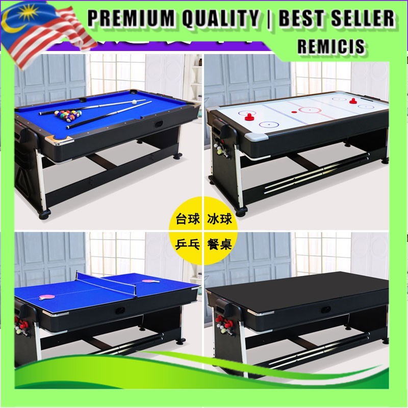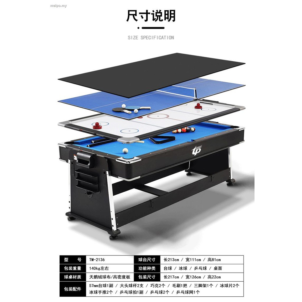 4 in 1 7-ft Multifunctional flip table indoor black 8 pool table, tennis ice hockey four-in-one conference