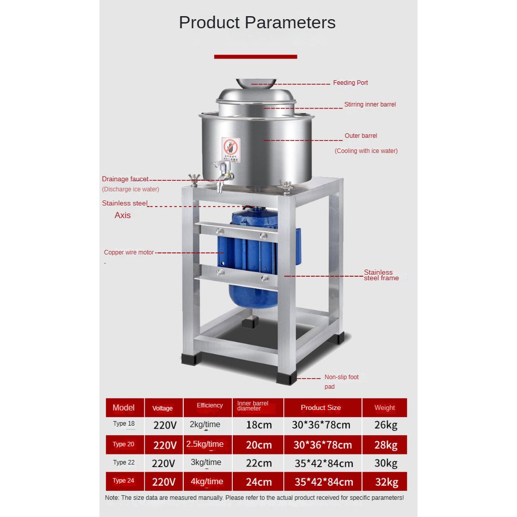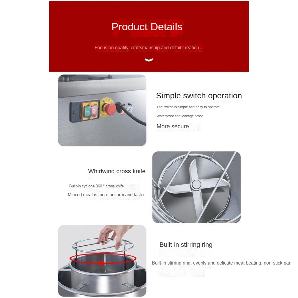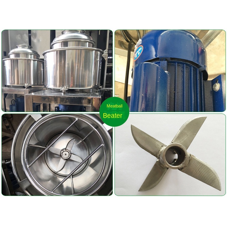 Product parameters Product Name: Meatball Machine Voltage: 220/380v Power: 3000kw Net weight: 40kg Packing: carton + wooden frame Size: 350*420*860mm Product use: minced meat/meat pulp Working efficiency: 4kg/time Scope of application Frozen food factory equipment, meat processing plant equipment, western restaurant equipment, Chinese restaurant equipment Features: This machine has the characteristics of beautiful appearance, sturdy and durable, convenient operation and maintenance, power saving and so on. It is an ideal equipment for processing meatballs and beef balls. This product can load 2-8 kg of meat at one time. You can finish the meat, toppings and stir into the meat in 2-3 minutes. Thinner than handmade pulp, meatballs and fishballs have good elasticity and white color. In order to meet the hygienic requirements, the meat drum cover and the bottom of the barrel are equipped with cooling devices to ensure the freshness of the meat.