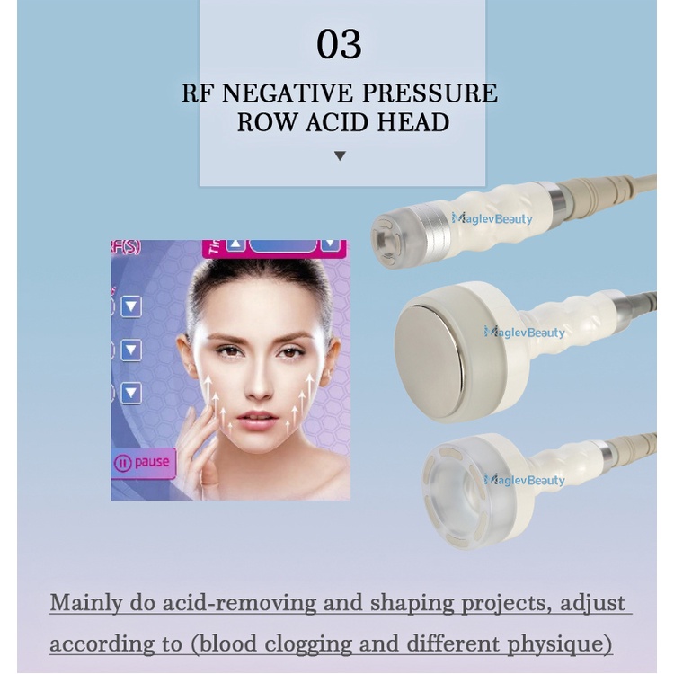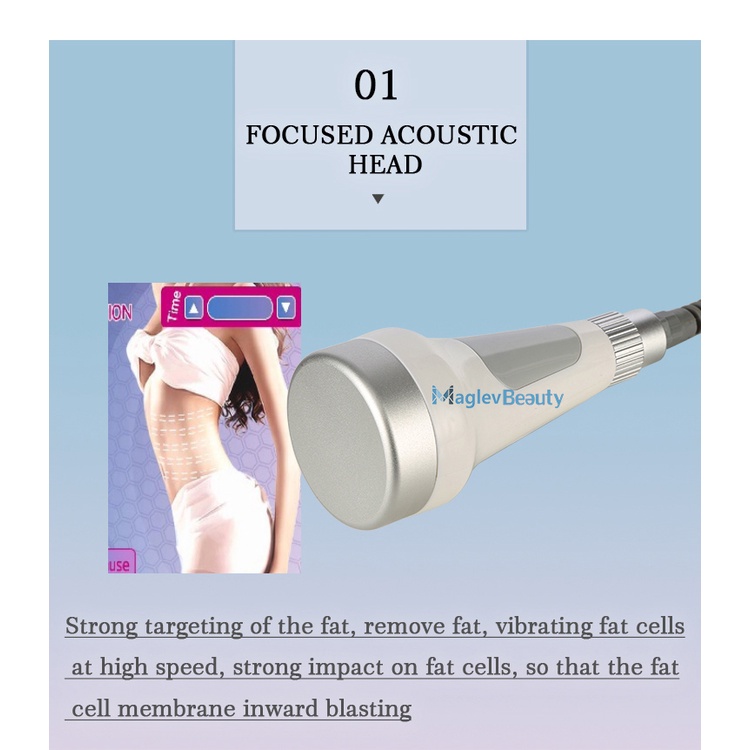 The use of strong acoustic waves gathered strong acoustic head firing frequency of 40000HZ sound waves into the human body can make the body fat cells have a strong impact and the friction between fat cells movement can effectively consume calories and consume cells of water , So that fat cells shrink, the other when the sound waves can make the cell strong crack impact, the cells burst, fat cells decreased, so as to achieve the effect of removing fat.