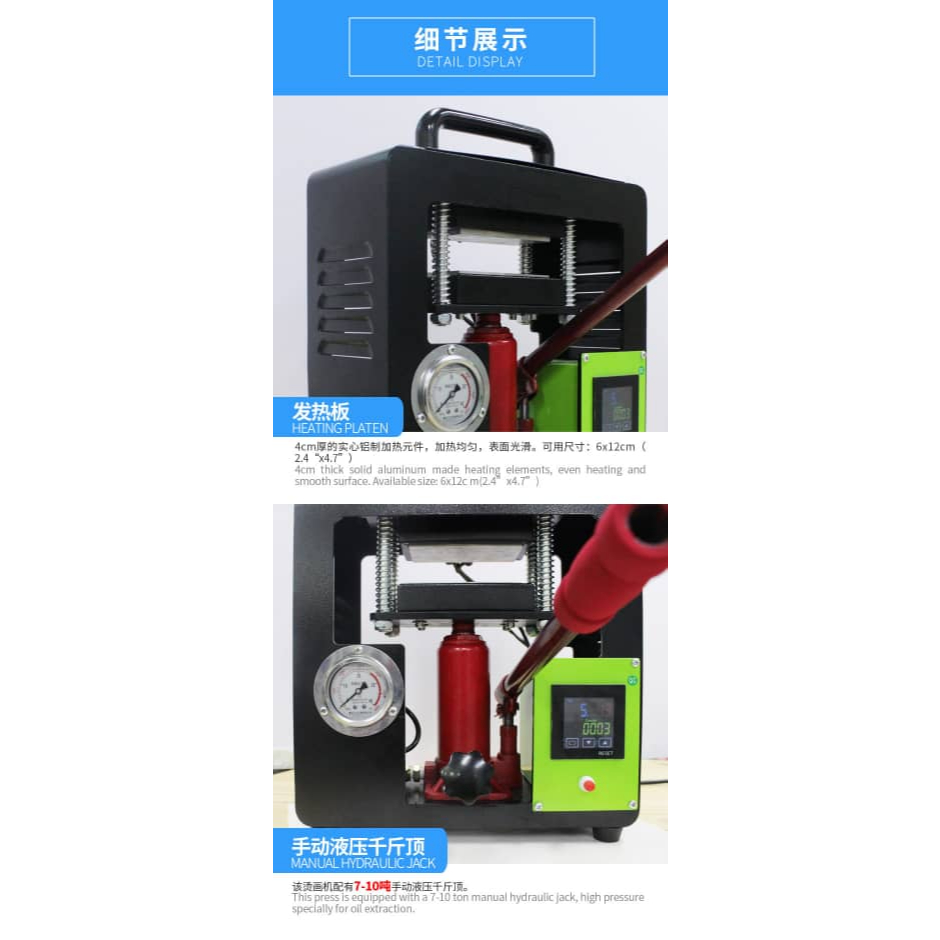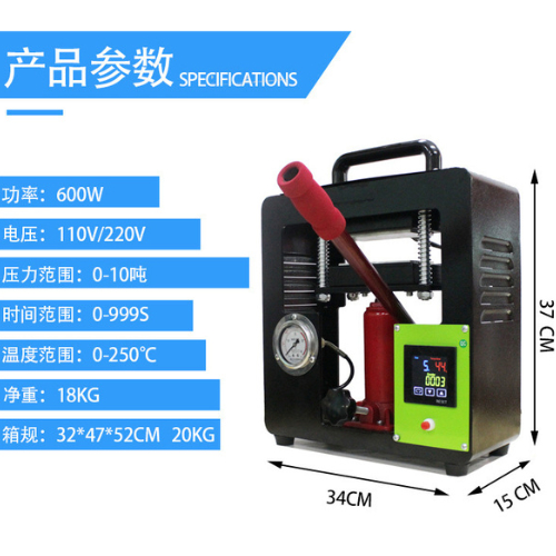 高压能力: 可产生高达10吨的压力,确保最大效率地提取松香。