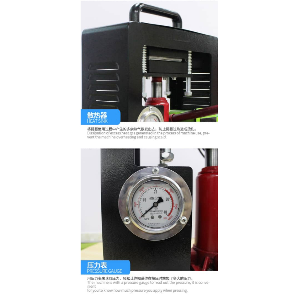 1. High Pressure Capability: Capable of producing up to 10 tons of pressure, ensuring maximum efficiency in rosin extraction.