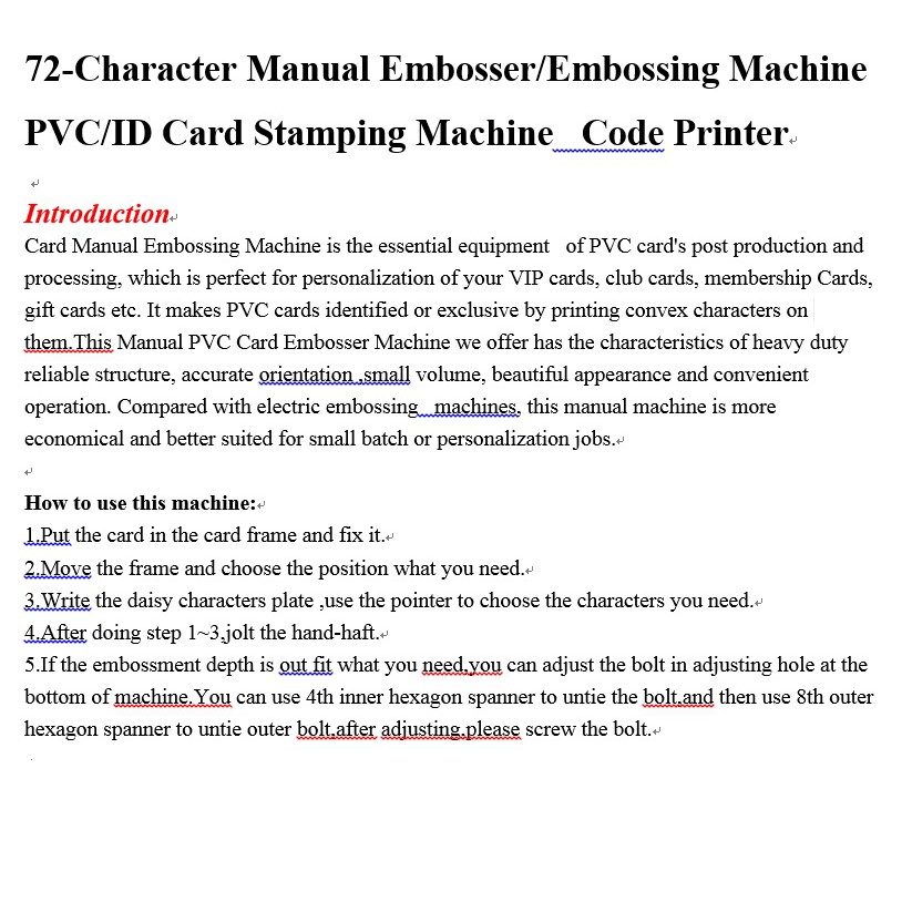 3.When switch the embossment size, please ward off the card frame slightly to avoid damage.