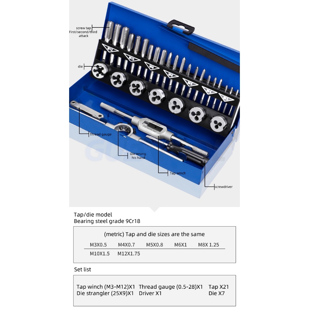 Name: 86 pcs metric tap and die sets