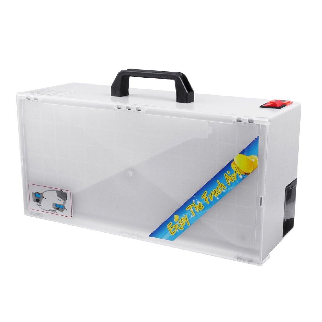 Two removable Fiberglass Filter Sponges and the Fan help to remove larger particles and fog effectively.
