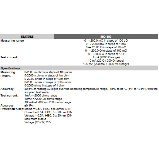 Ranges from 200.0m ohms to 2000 ohms with minimum resolution of 100µ Ohm