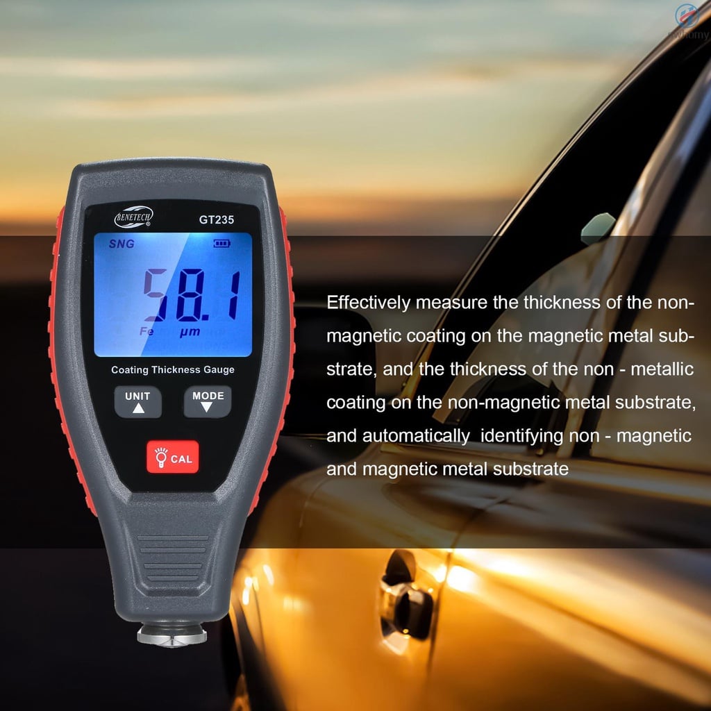 The device can make a quick and effective measurement of the thickness of the non-metallic coating on the non-magnetic metal substrate and the thickness of the non-magnetic coating of the magnetic metal substrate. It can also automatically identify the magnetic and non-magnetic metal substrate.