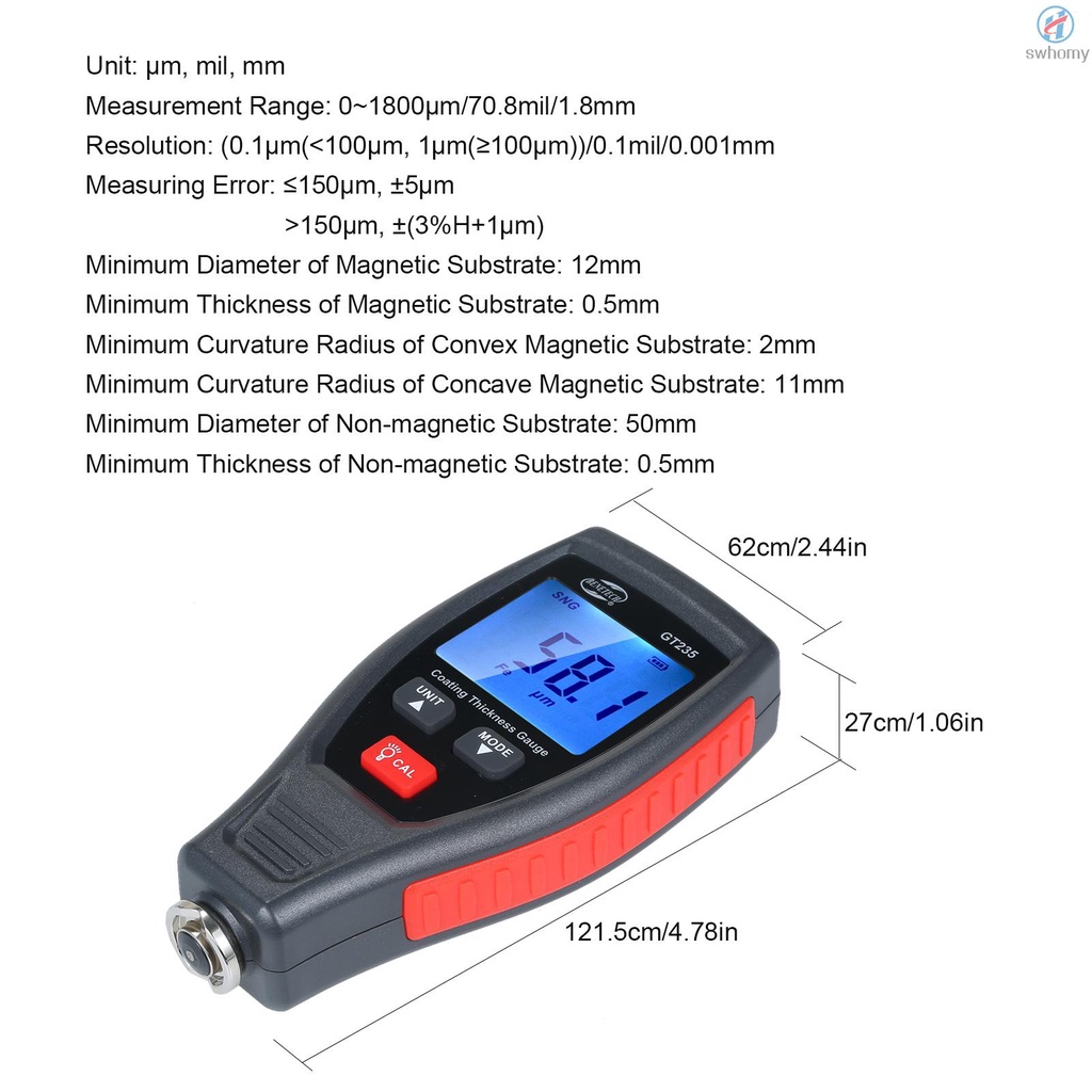 Measurement Range: 0~1800μm/70.8mil/1.8mm