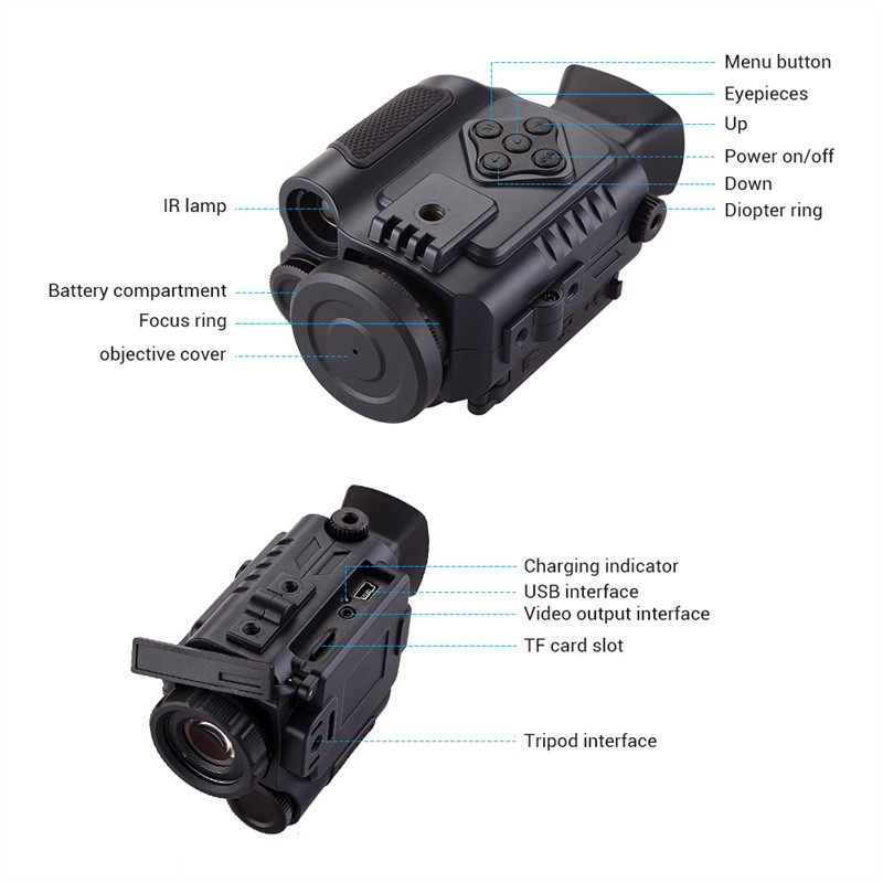 ● Night Vision Instrument Working time: The auxiliary light source opens the state to be about 1 hours, the auxiliary light source closes the state to be about 2.5 hours.