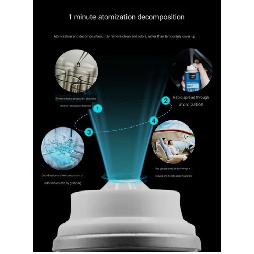 Use: Specifically designed for car interiors, quickly decomposes unpleasant odors, thoroughly eliminates odors, and effectively inhibits mold growth.