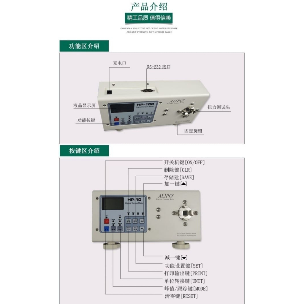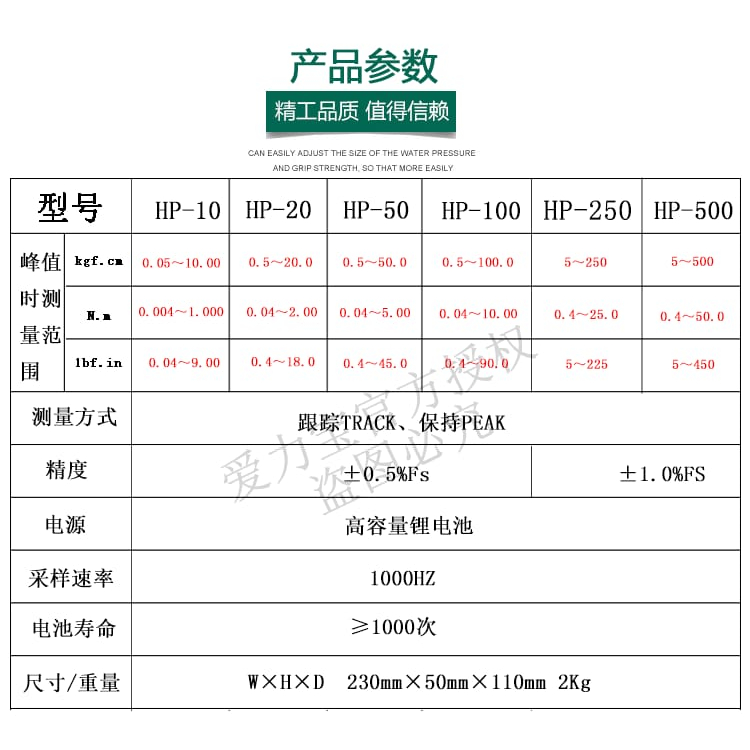 These specifications indicate that the product comes in multiple models, each with different peak values, time measurements, and ranges to meet various application requirements. Additionally, the product is powered by a high-capacity lithium battery and offers a high sampling rate and long battery life. The accuracy of the product varies between different models, allowing users to choose the most suitable model based on their specific needs. Overall, this is a reliable and high-performance product.