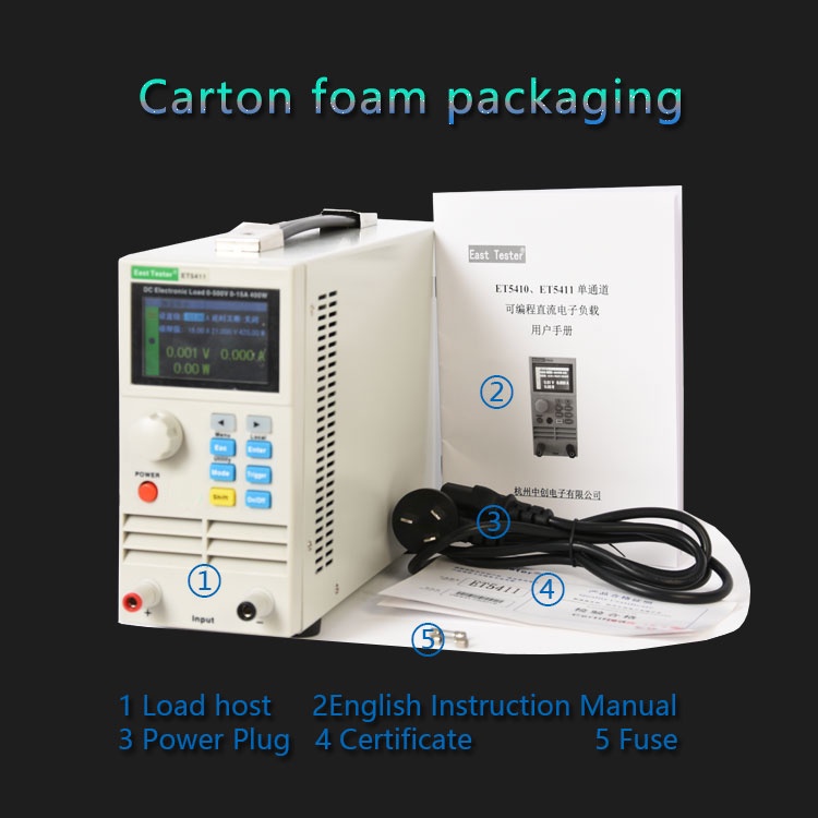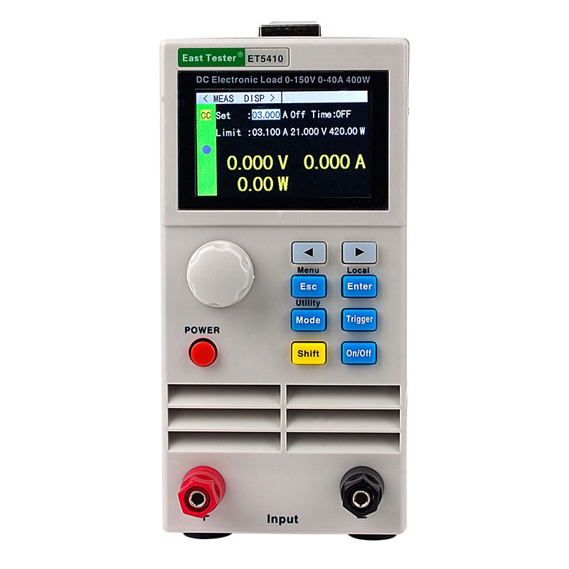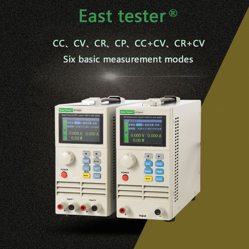 ET54 series DC programmable electronic load provides 1mV/10mV, 1mA/10mA high resolution and precision with superior performance. It is equipped with 12 common modes and complete test functions, which can be widely used in charger, switching power supply, linear power supply, battery and other production line testing.