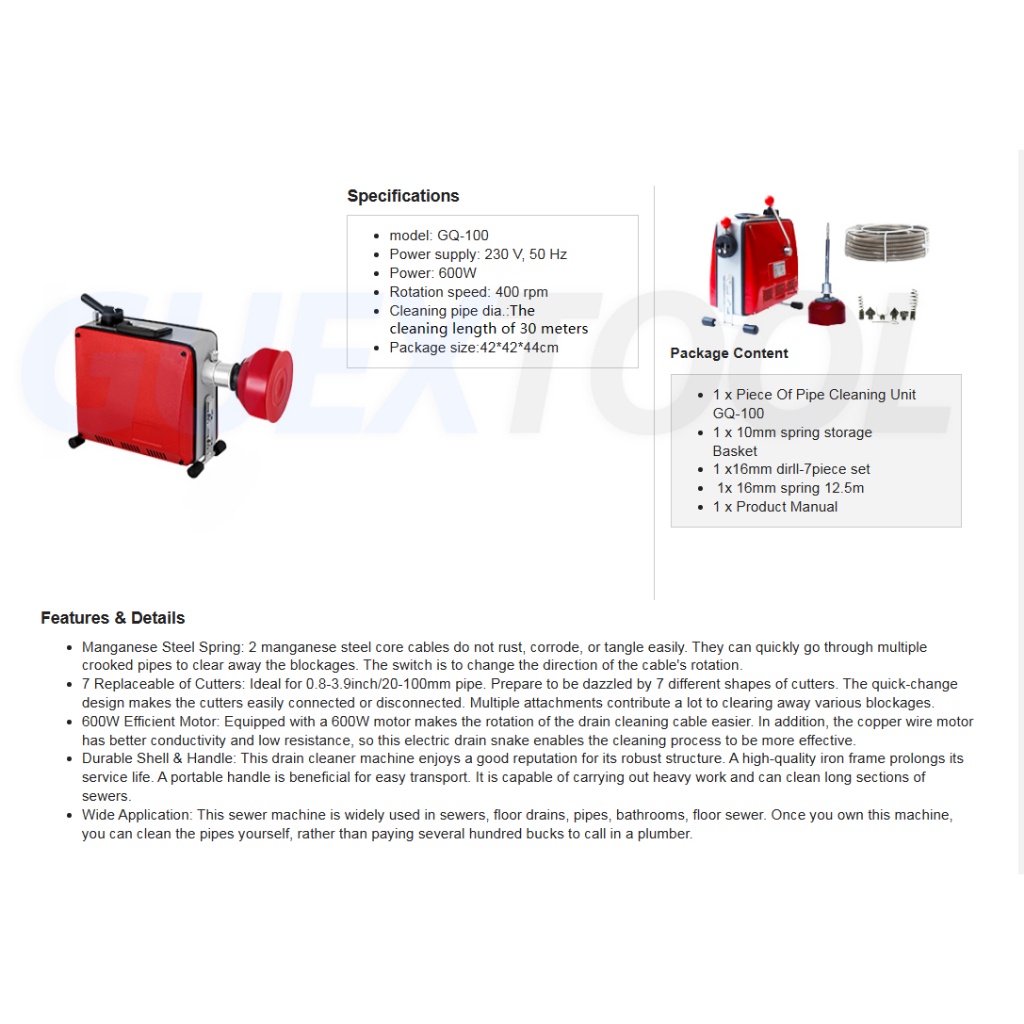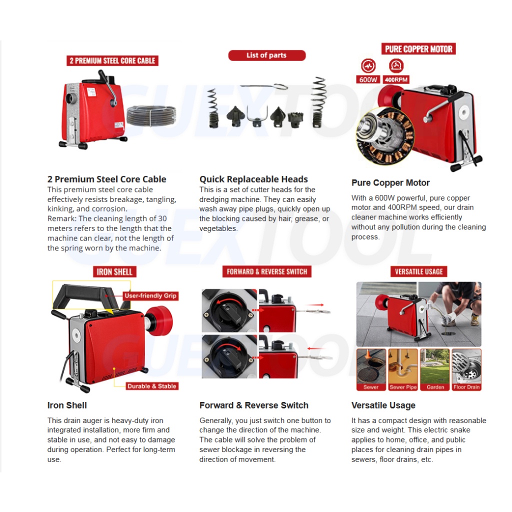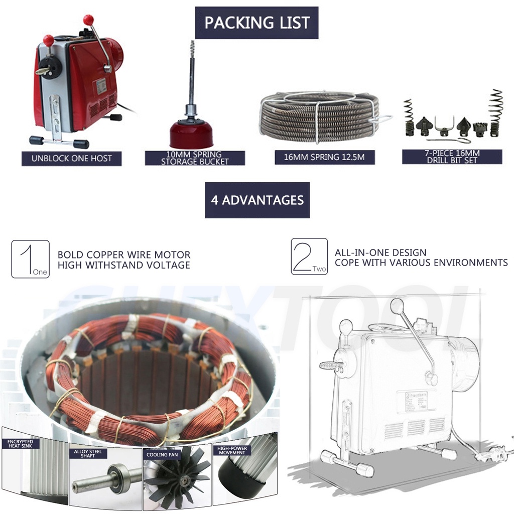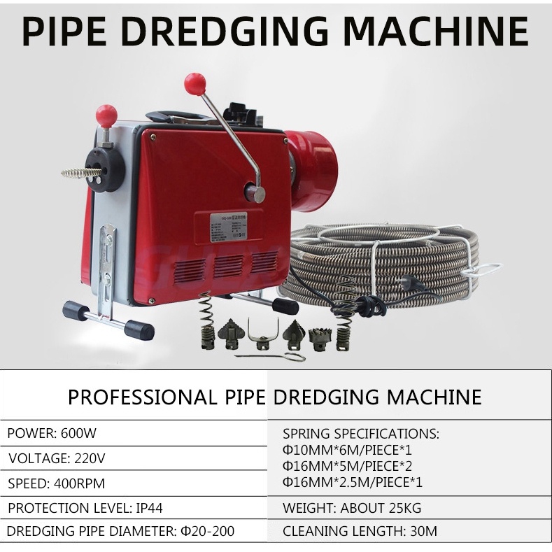 Remark: The cleaning length of 30 meters refers to the length that the machine can clear, not the length of the spring worn by the machine.