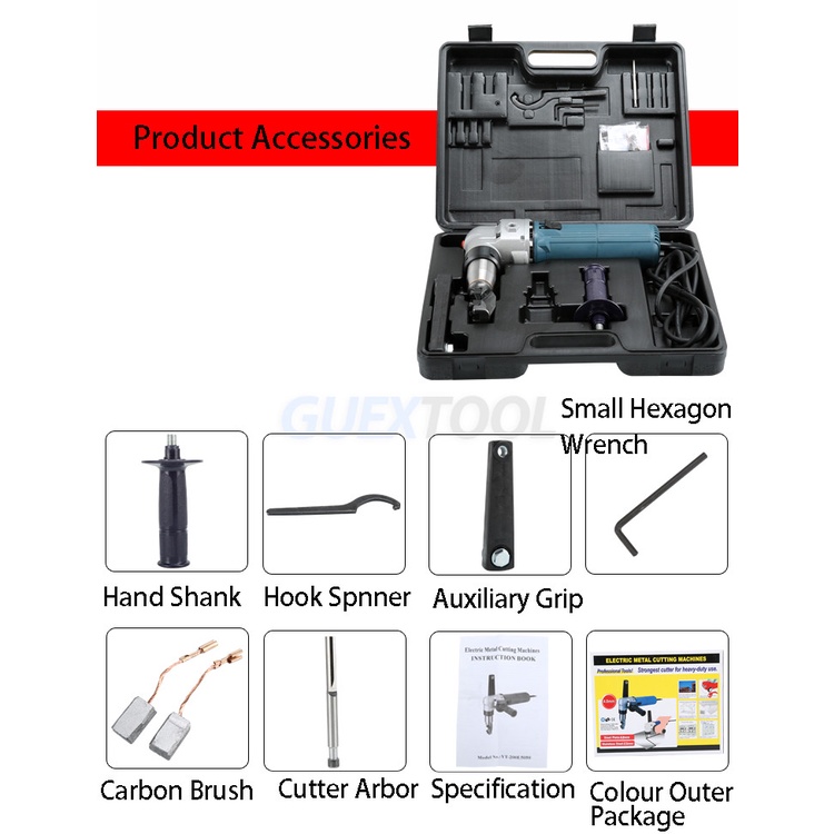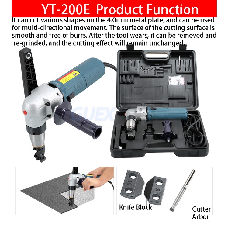 Brand Name: GUYX Product name: high power electric punching shears Model: BL4020DCJ Speed: 25000 Power: 625w Minimum cutting radius: 300mm Stainless steel cutting thickness: less than 2.5mm