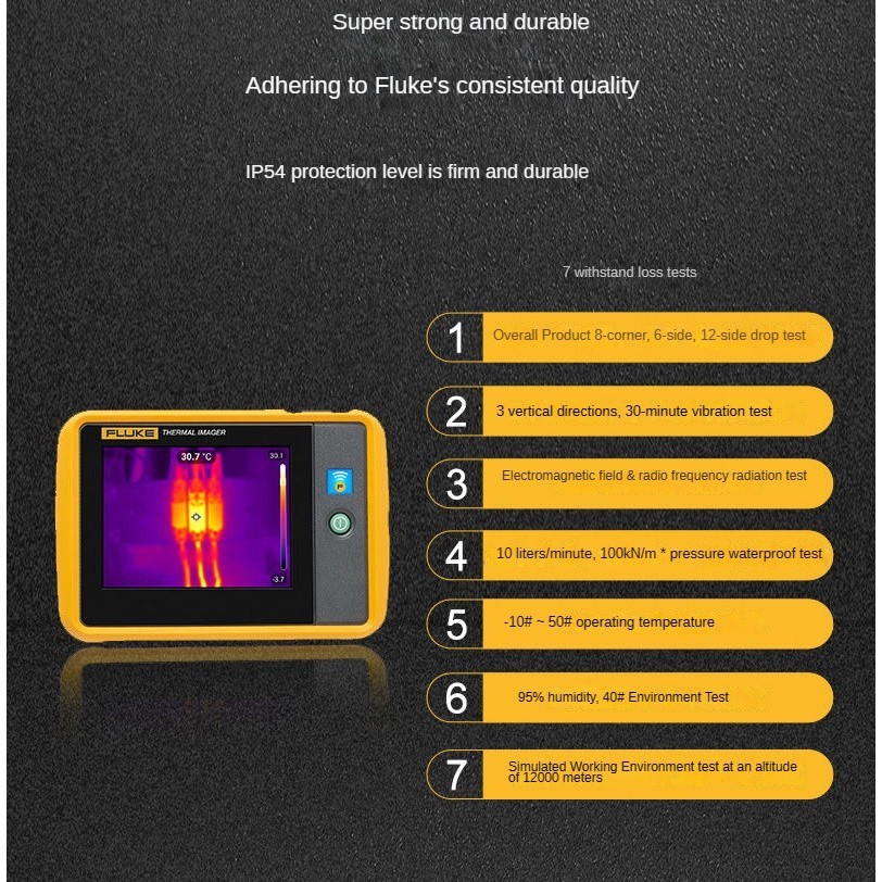 The compact thermal imager can be easily carried around every day. At your fingertips. Resistance to dust and moisture intrusion. It can withstand a drop of 1m. Now, the enhanced infrared tester can be easily put in your pocket, and can quickly scan the temperature of electrical equipment, machinery and other assets after taking it out.